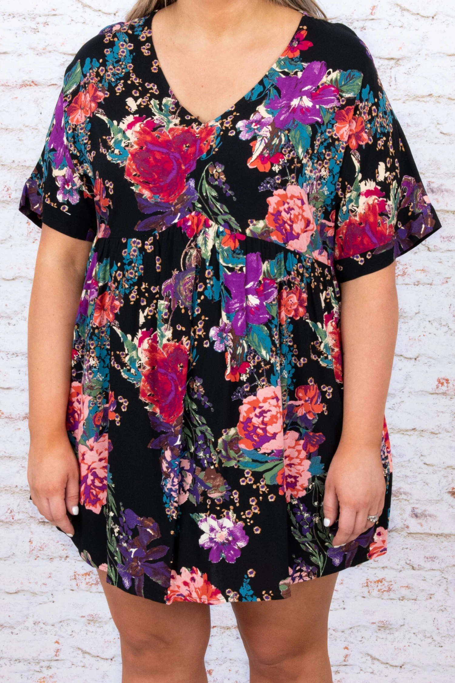 Dress for success in this beautiful outfit! This dress has a pretty floral pattern with just the right amount of color for every occasion! It’s comfortable for all-day wear, has a flowy fit, and features the cutest v-neckline! Style this dress with wedges or sandals for an effortlessly chic look!