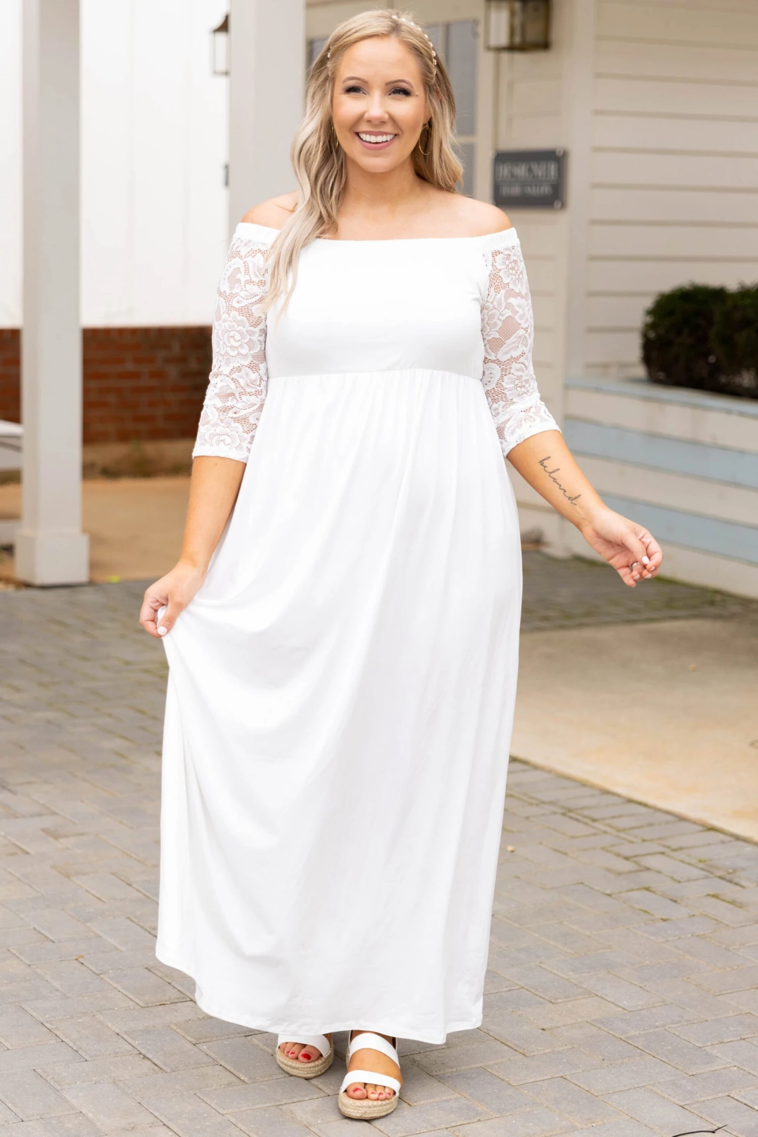All eyes will be on you in this stunning maxi dress! The lace sleeves are so elegant and paired with the off the shoulder look, this dress is one of a kind! Pair this with heels and a fun headband for gorgeous look this season!