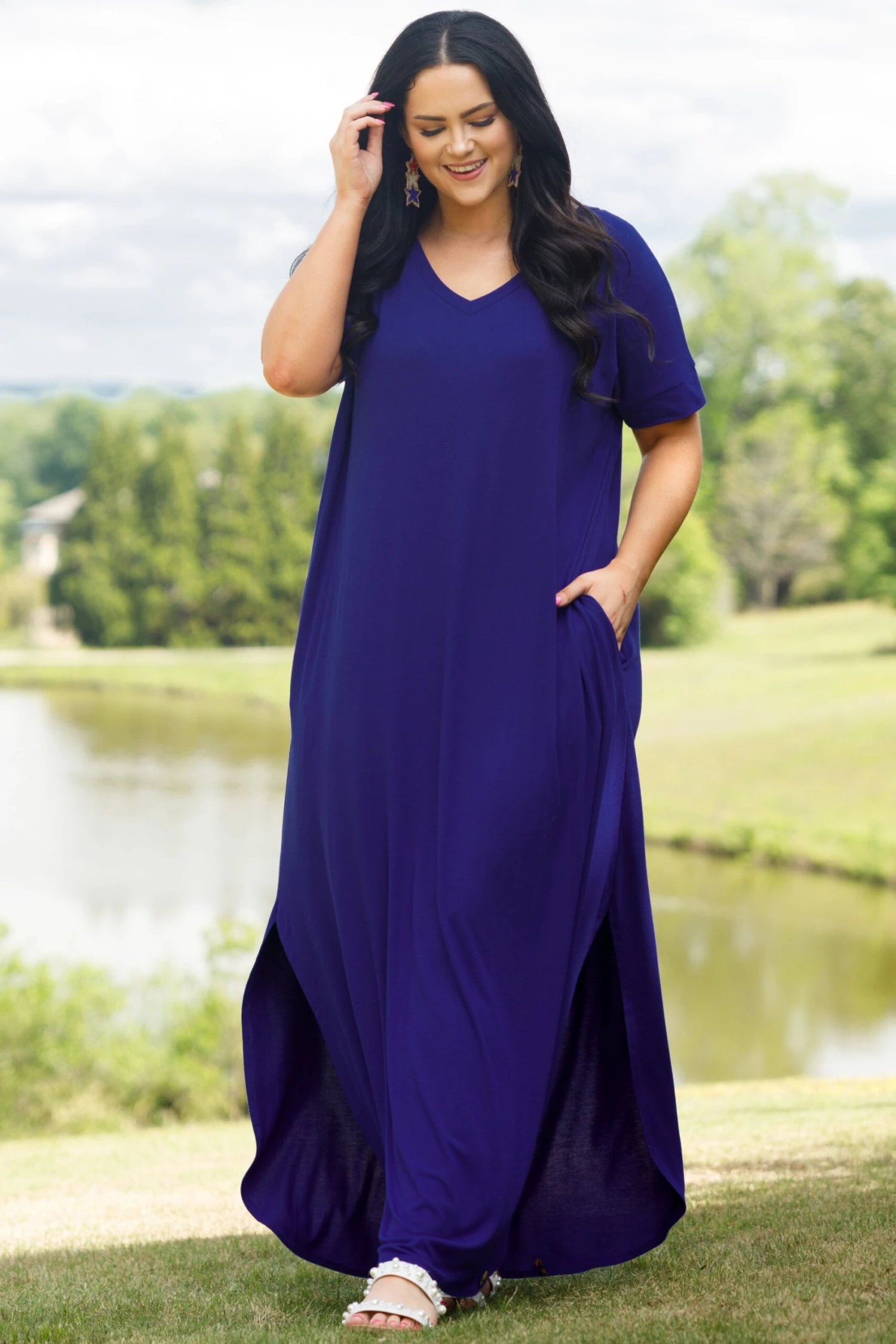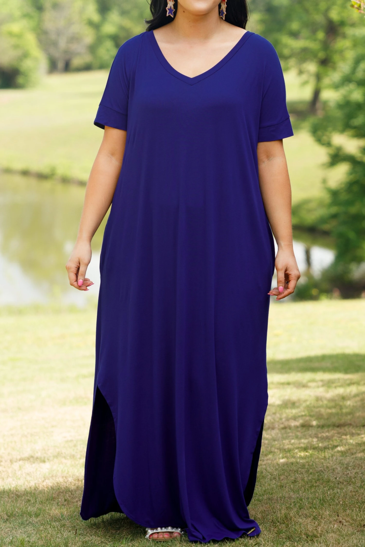 The maxi you’ll be wearing ALL summer long!! The bright blue color is super sweet! It’s ultra comfy and so soft!! The relaxed, flowy fit makes it perfect for hot days and nights!! Pair it with sandals and cute accessories to complete the look!