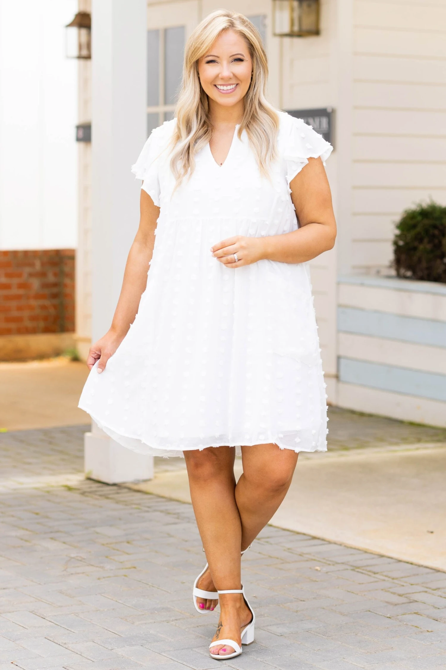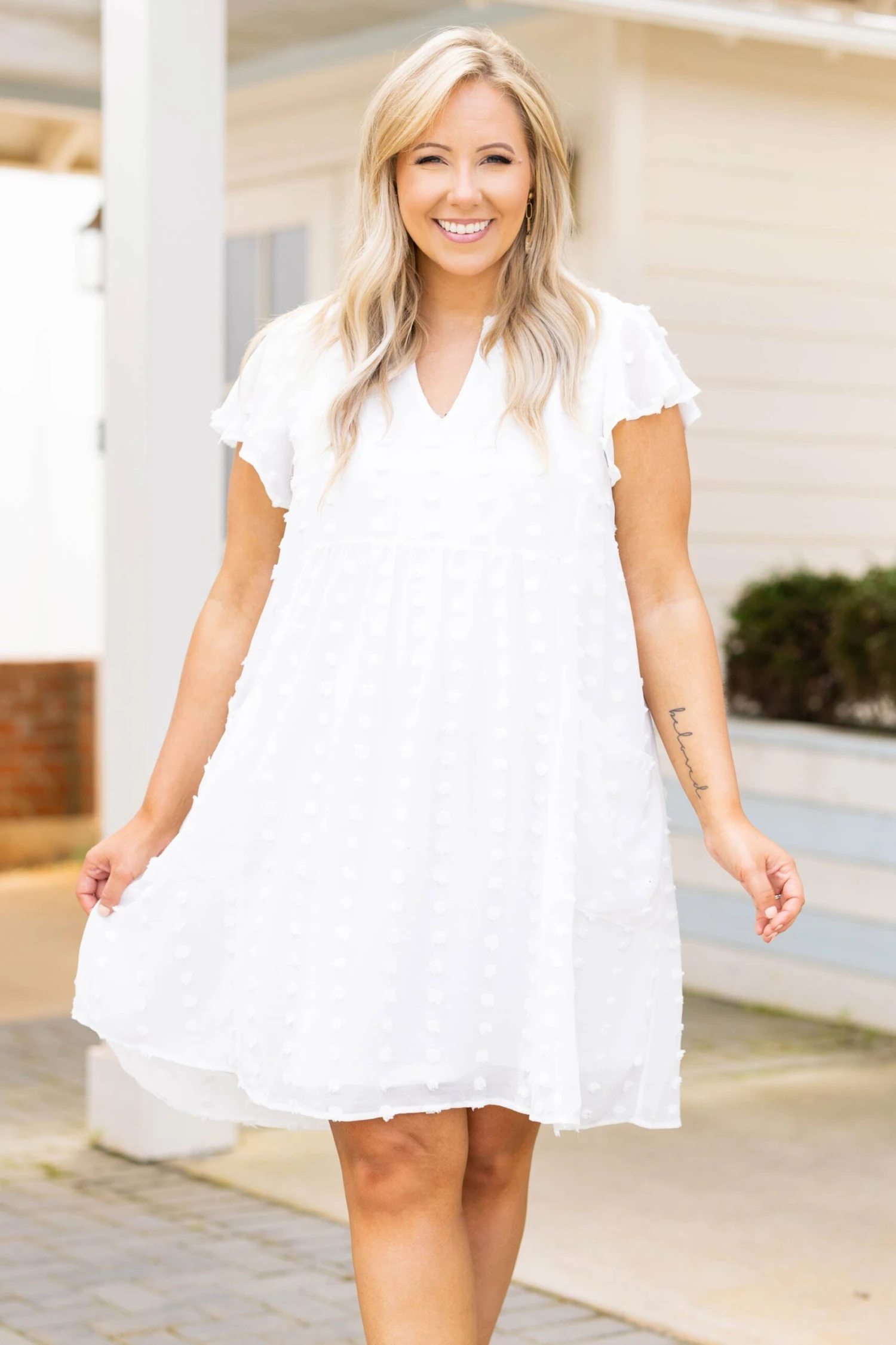 No need to look for any other dress! This beautiful style has a flirty and feminine fit with a classic off white color you can wear with everything! It’s comfortable, easy to dress up or down, and has the sweetest neckline! Not to mention how gorgeous the french raised to the pattern is! Wear this top with shorts or skinnies for an effortlessly chic look!