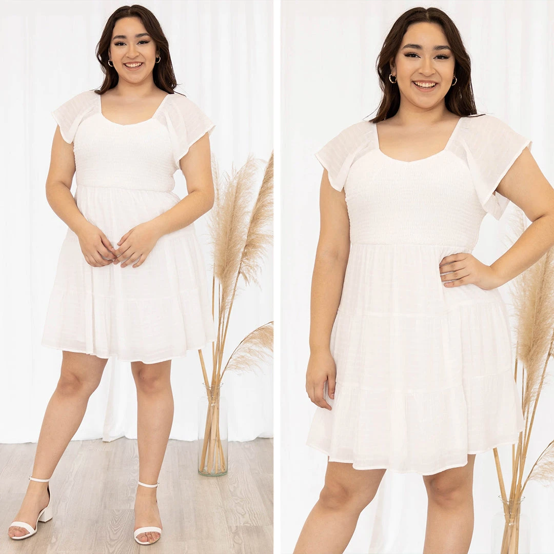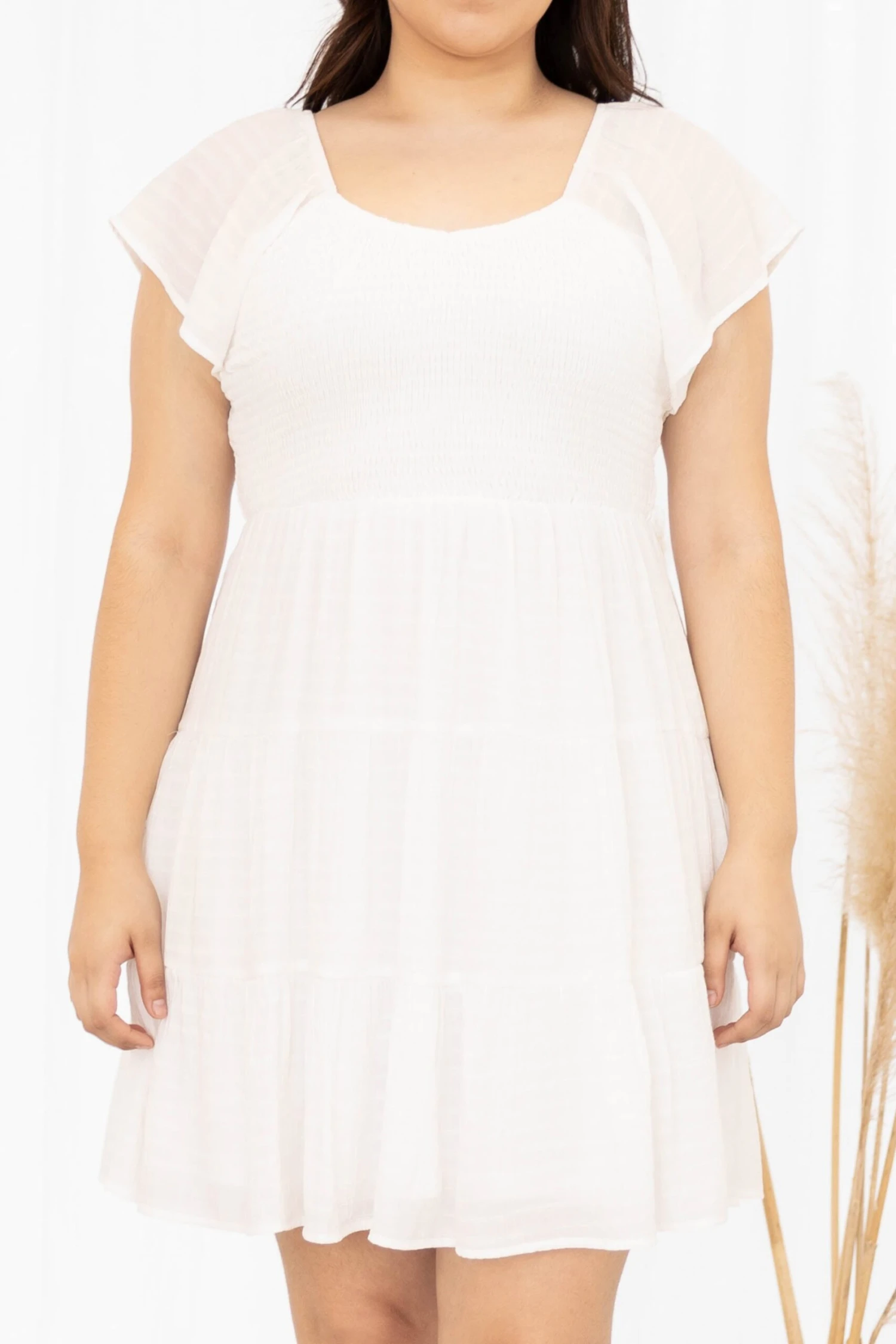 We love a good brunch party, and this is the perfect dress for one! The ivory color is so fab and the tiered style with the smocked top is so flattering! The ruffle sleeves give this such a sweet feel! We love it paired with a cute headband and some great wedges for a super stylish look!