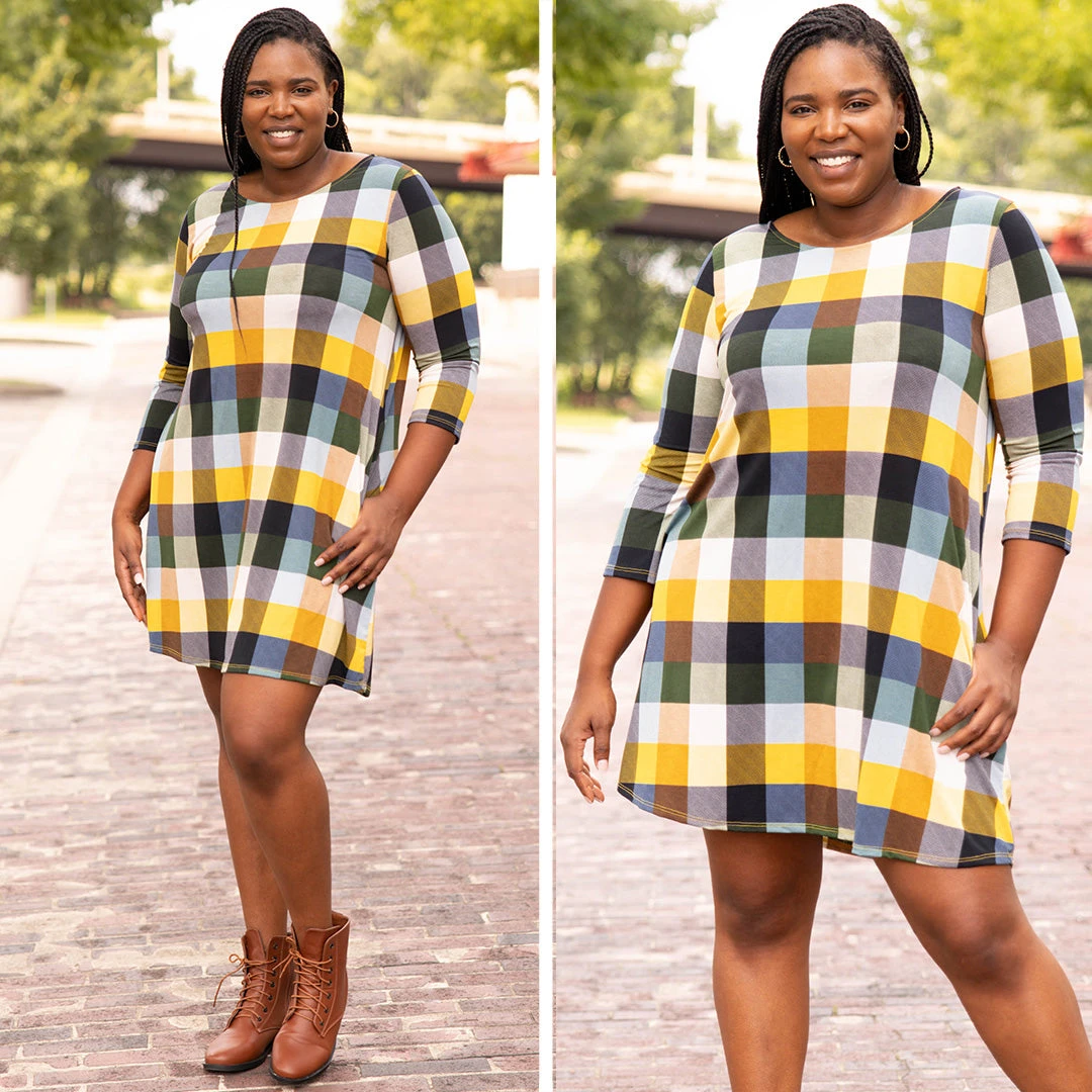We areĀ getting ready forĀ Fall, and this dressĀ is the perfect addition to your wardrobe!Ā This dress has a bold plaid pattern perfect for the new season with a trendy color combination you can dress up or down for every occasion! It’s comfortable for all-day wear and has a relaxed fit for all body types! Pair with sandals or boots and a bold accessory for your next event!Ā