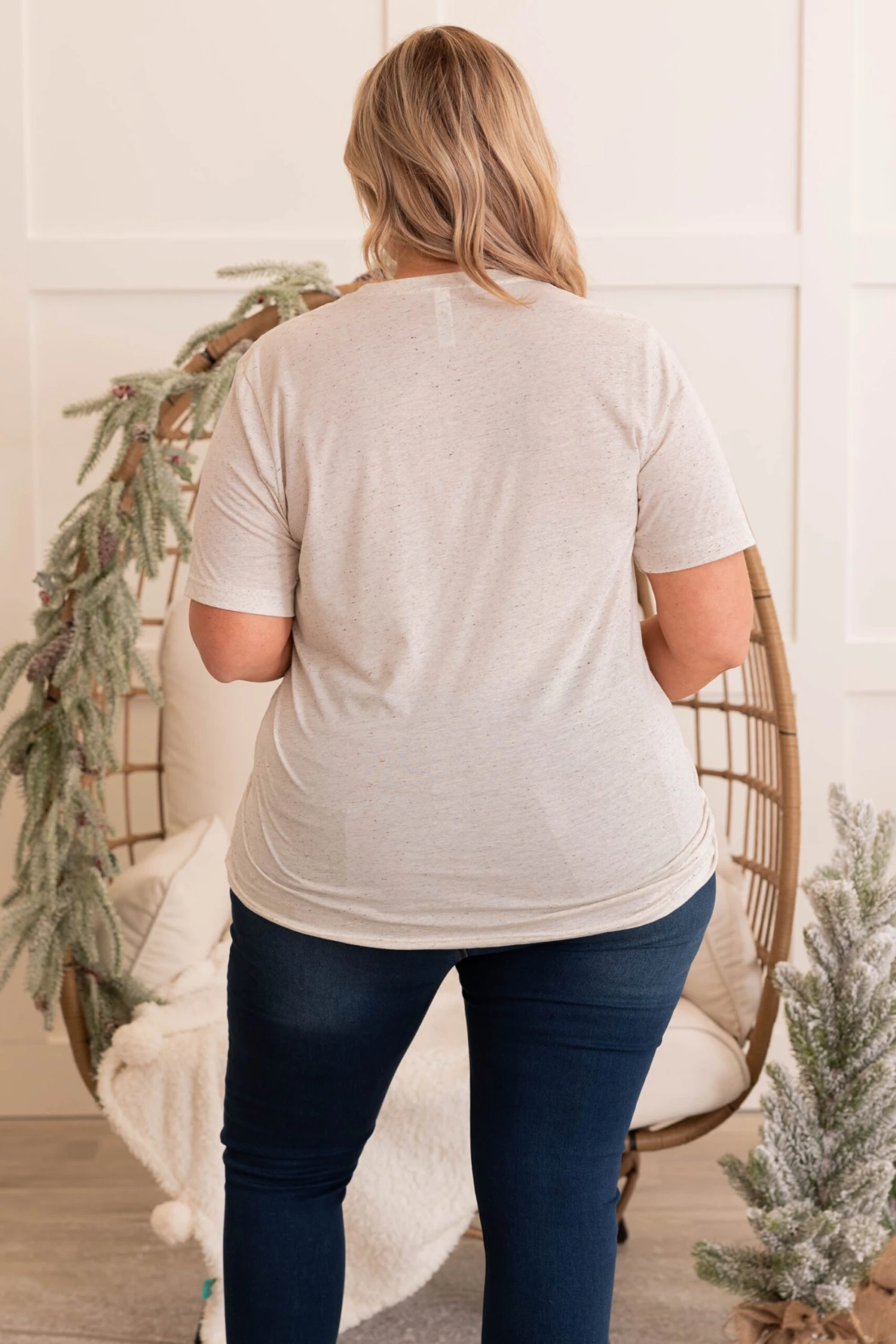 Coffee + Christmas = You in this adorable tee this holiday season! This tee has a neutral oatmeal color with a simple, cute graphic that is just in time for the season! The stretchy, figure flattering fit is everything! Style this tee with a cute cardi and jeggings for a casual chic look!
