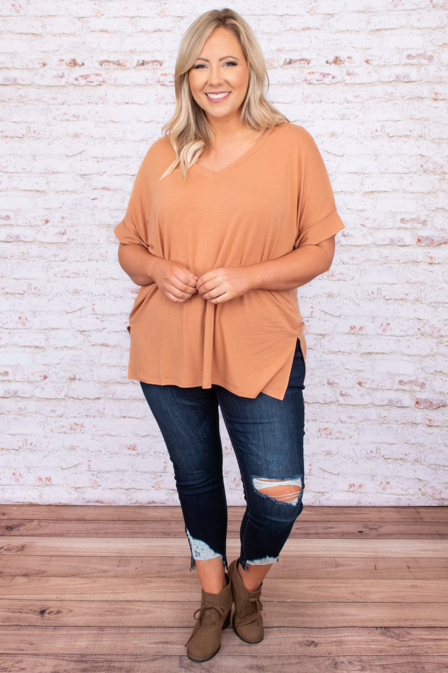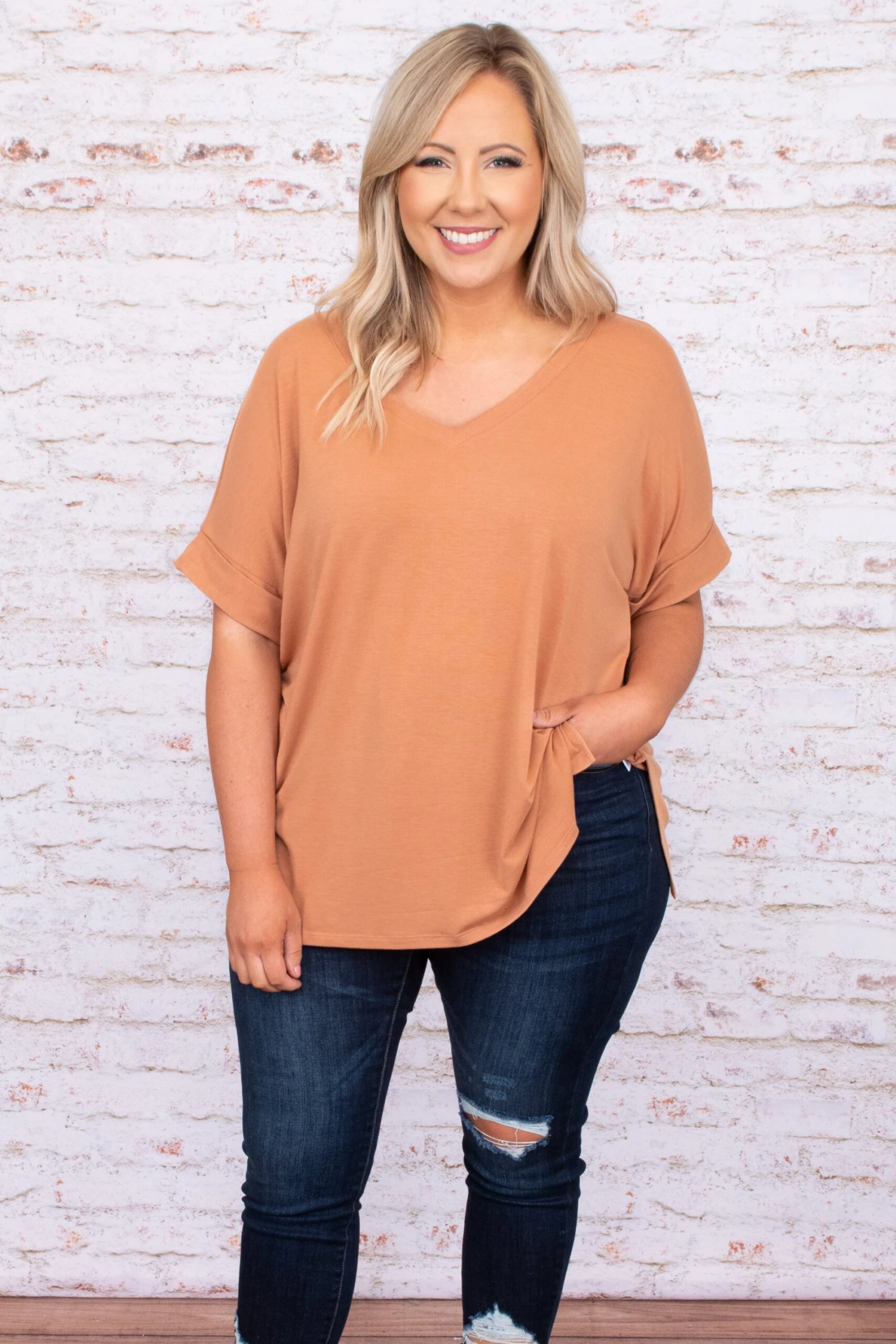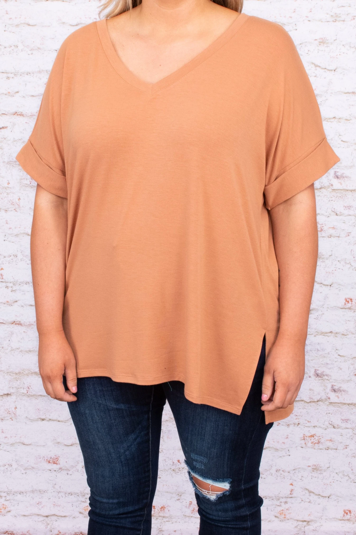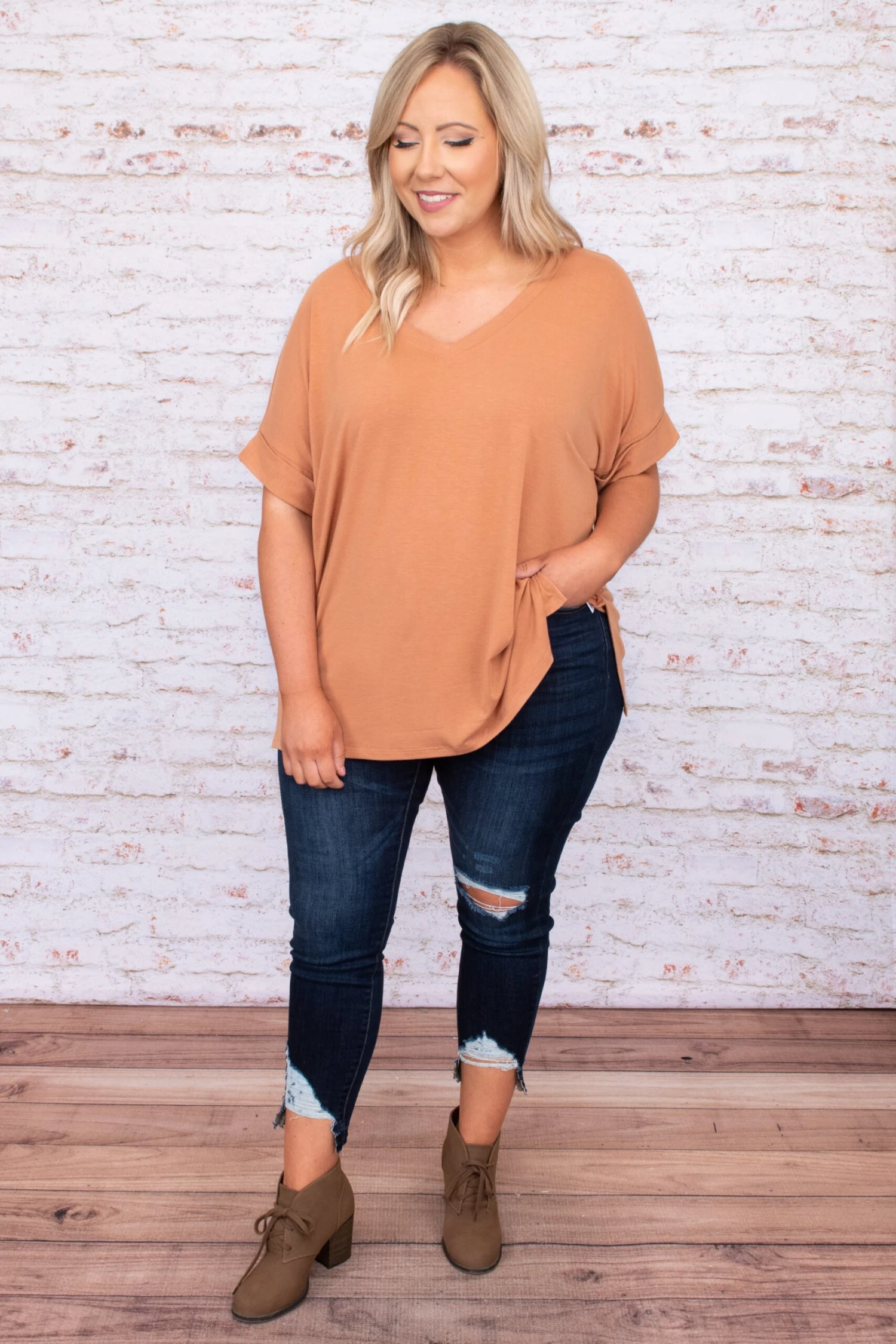 Travel comfortably in this cute top! It’s a solid camel-colored top that is a closet staple! It has a relaxed fit and super soft fabric that will keep you comfy from day to night! Throw it on with leggings and sneakers for your next adventure!