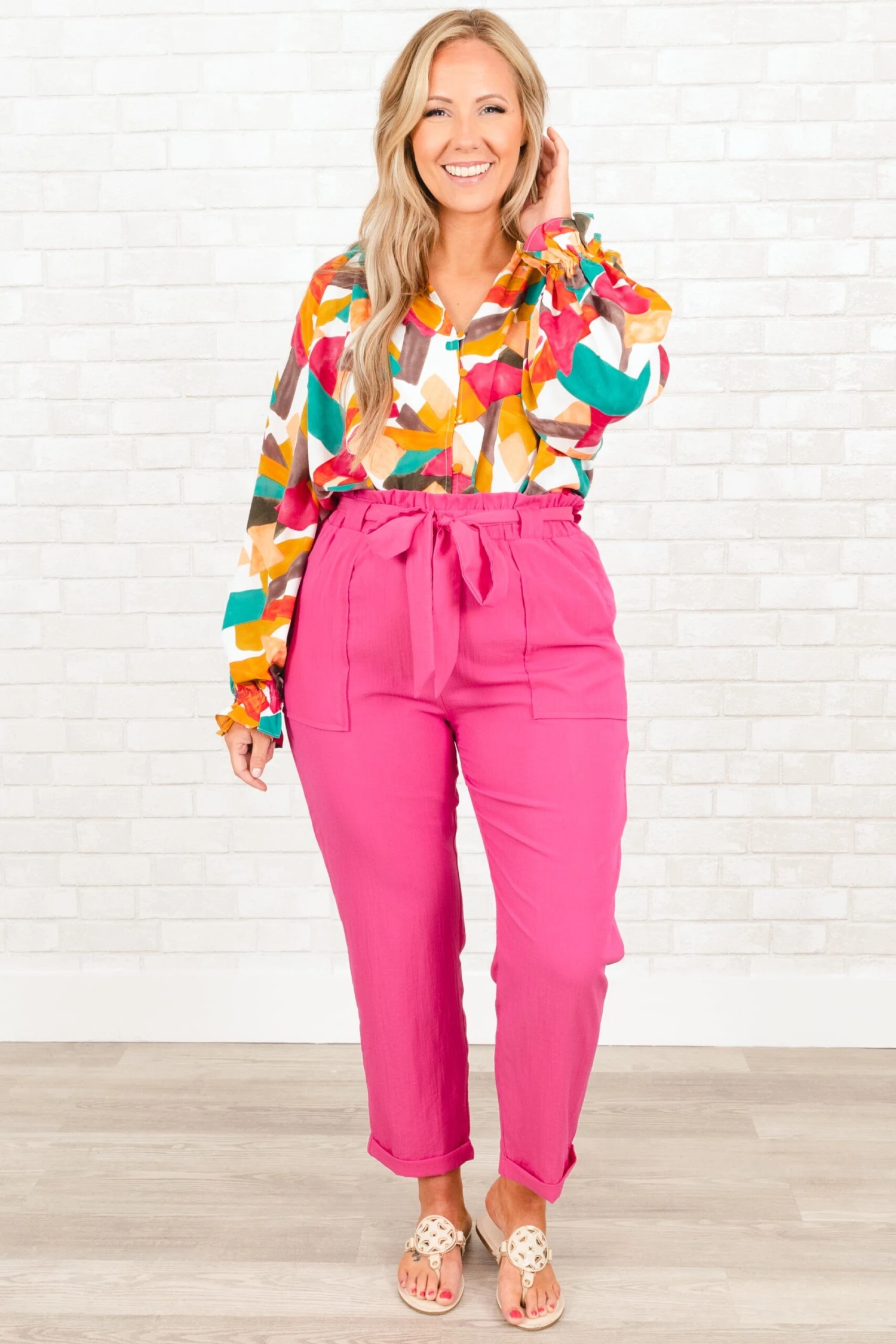Bring a little fun to the office with this beauty! This lightweight top features an abstract pattern that adds the perfect pop of color to your work wardrobe! Its bubble sleeves provide extra comfort and style, making for a great choice for everyday wear!