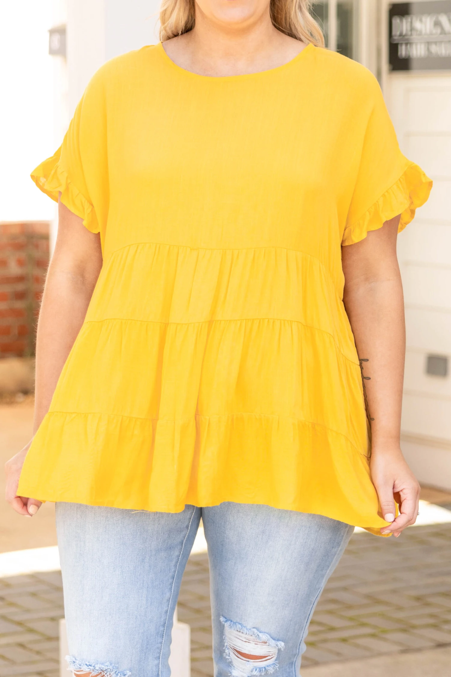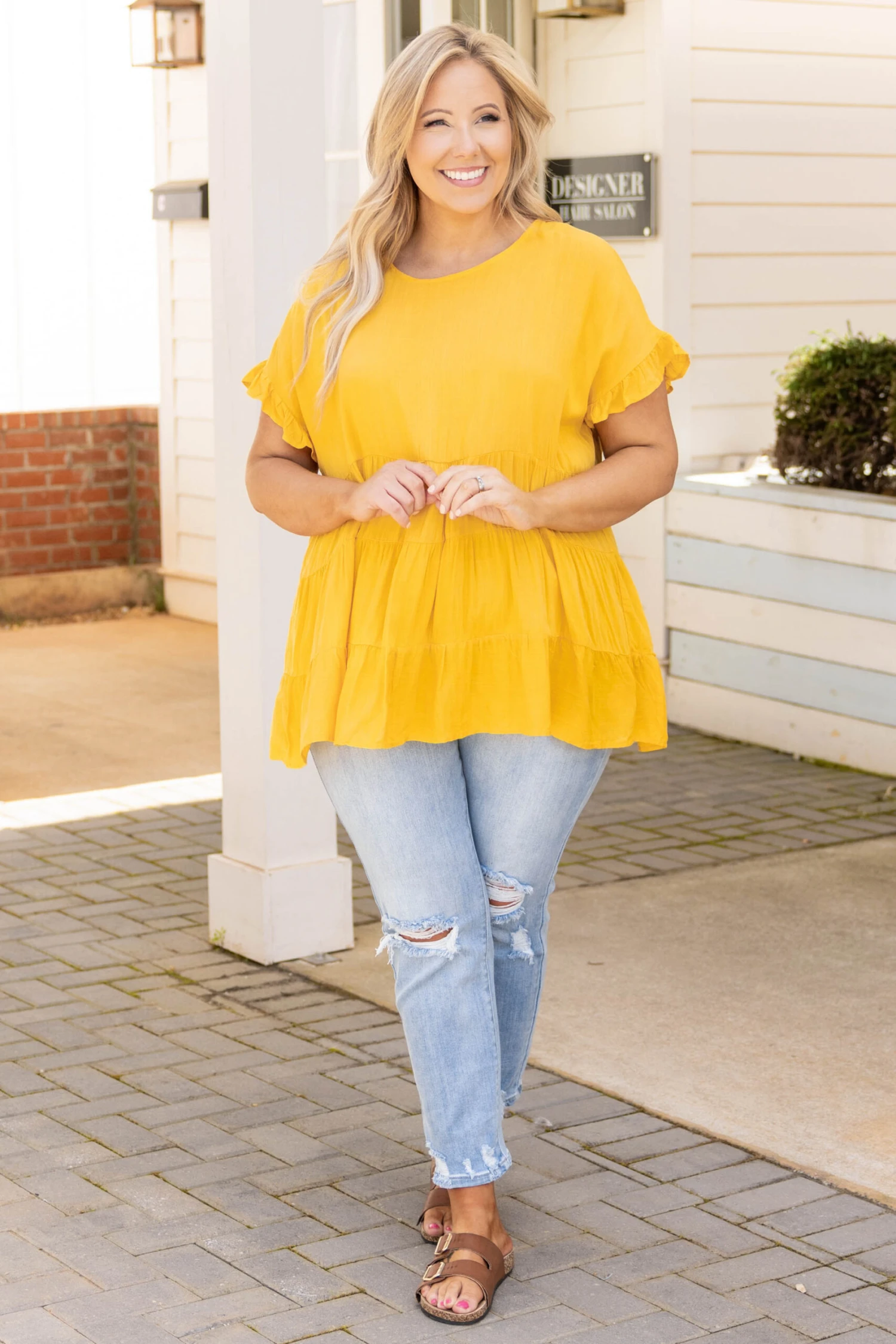 Defy the fashion odds with this trendy top! This top has a solid marigold color you can dress up or down and style for every occasion! It’s comfortable for all-day wear, has a figure-flattering fit, and features a babydoll design for the ultimate look! Pair this top with skinnies and flats for an effortlessly chic look!