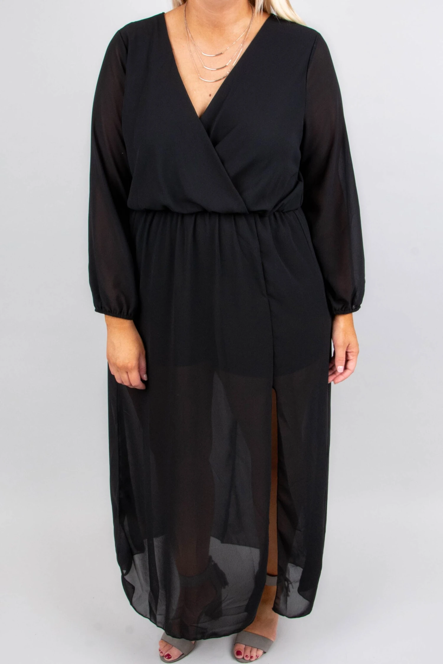 This is the perfect dress for a dreamy date night! It has a sleek black color and a super flattering fit! The flirty, flowy fabric is so light and breezy you’ll love wearing it! Not to mention how functional the built in shorts are! Style it with heels and chic jewelry to complete the look!