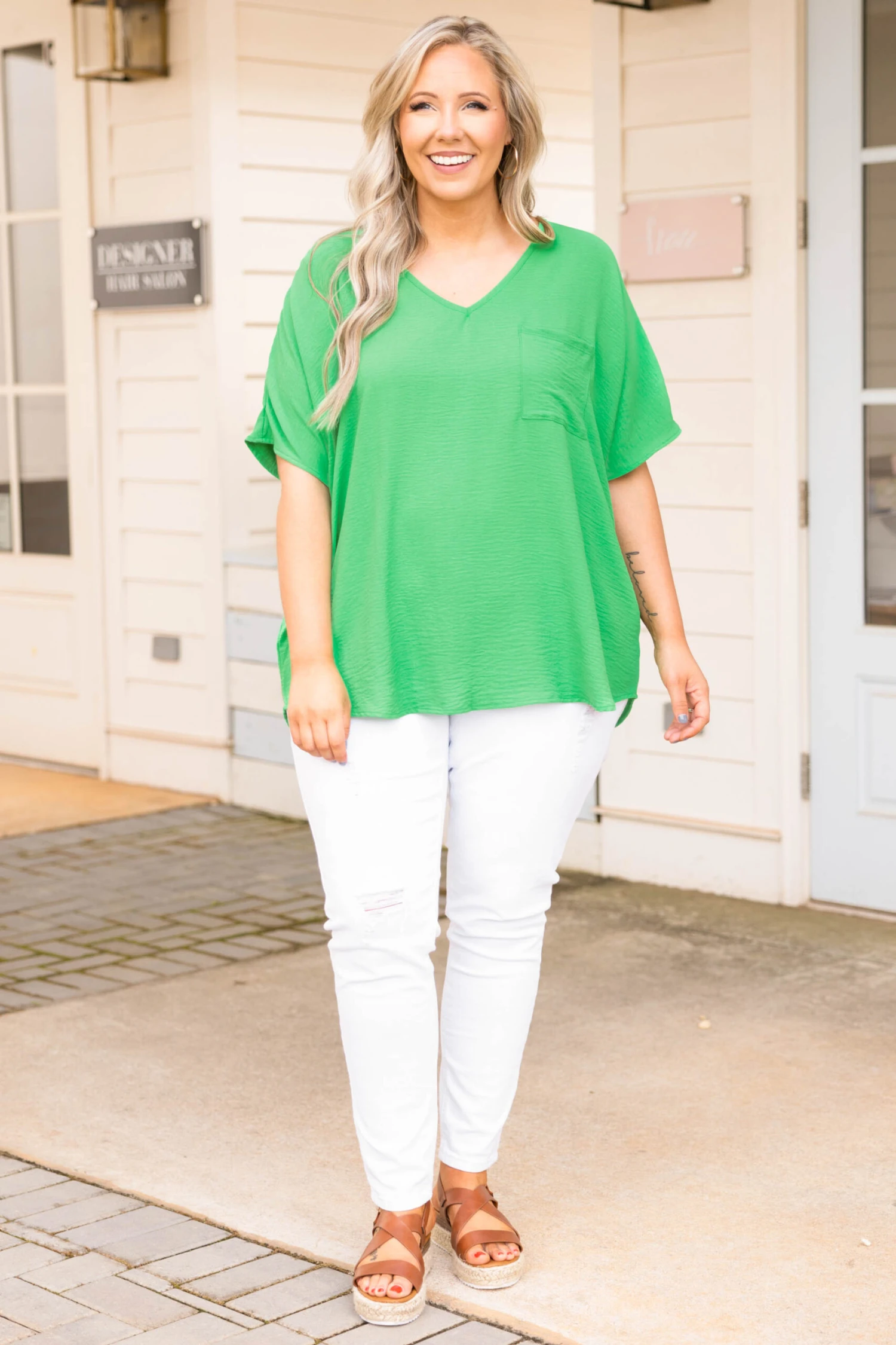 Look and feel stunning in this light-weight, fun top! Throw on this textured cutie for a brunch date with the girls! Pair this with your favorite pair of sandals and skinnies for a trendy everyday look.Â