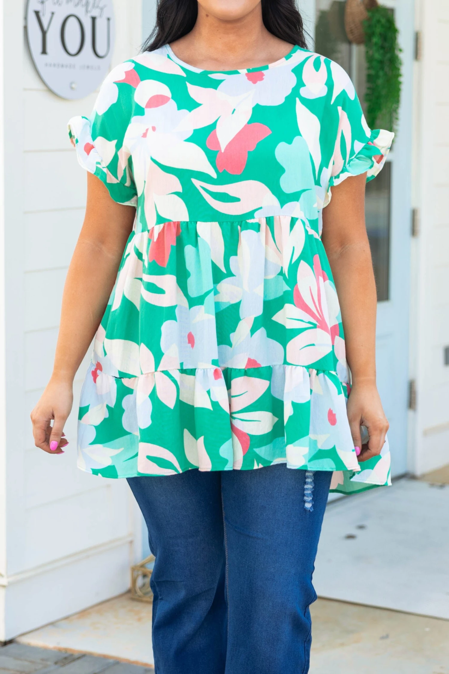 You’ll be as beautiful as your favorite flower in this top! It exudes a soft, feminine aesthetic with its babydoll design and pretty floral pattern in a bright turquoise color! Perfect for adding a stylish touch to any warm-weather outfit!