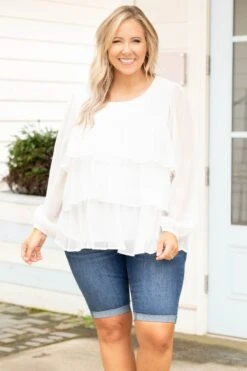 We love this top! It has a pretty pearl color you can dress up or down and style with everything in your wardrobe! It’s comfortable for all-day & night, has a relaxed baby doll fit to flatter your figure, and features the cutest ruffled fit! Simply pair this top with shorts and sandals for an effortlessly chic outfit!