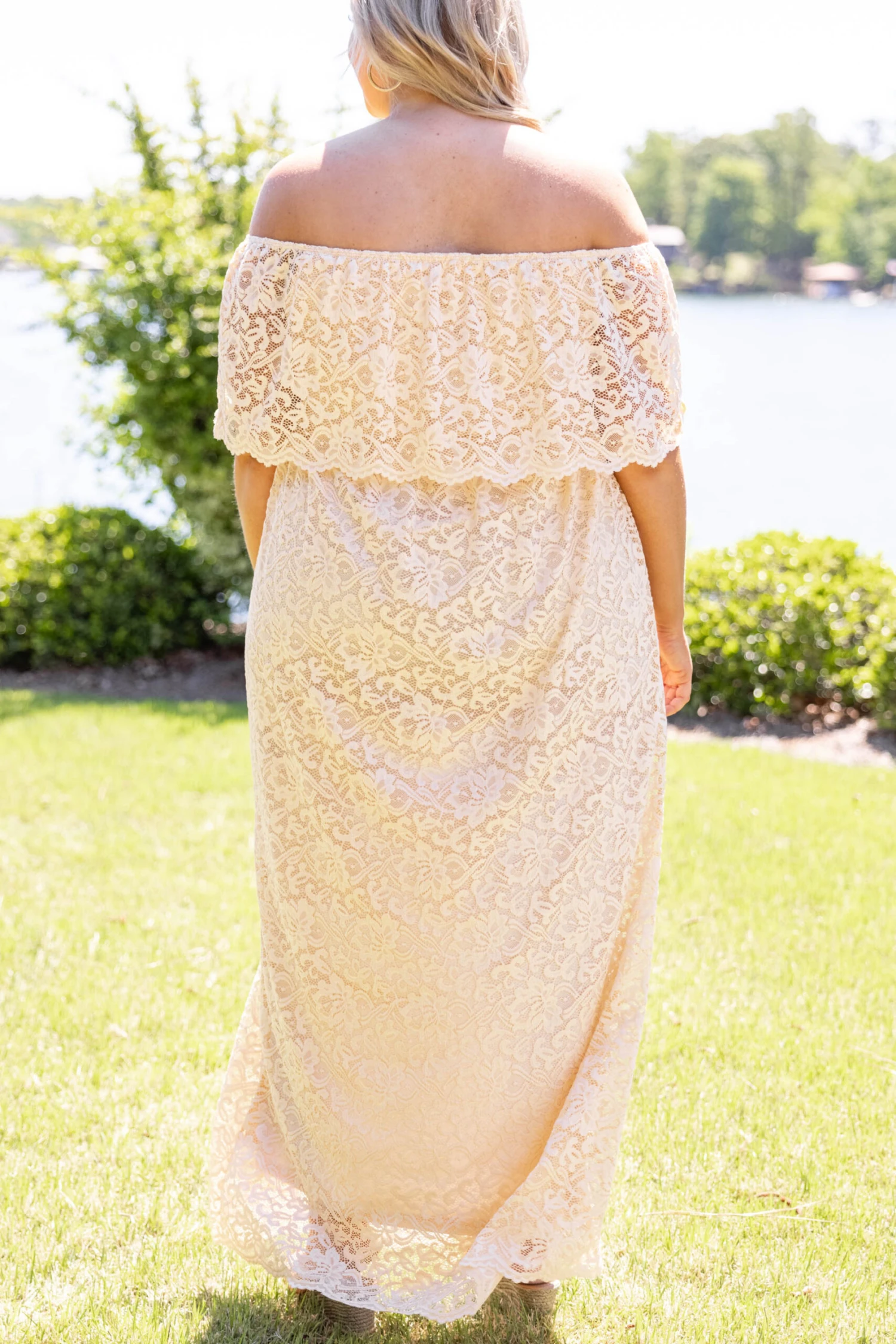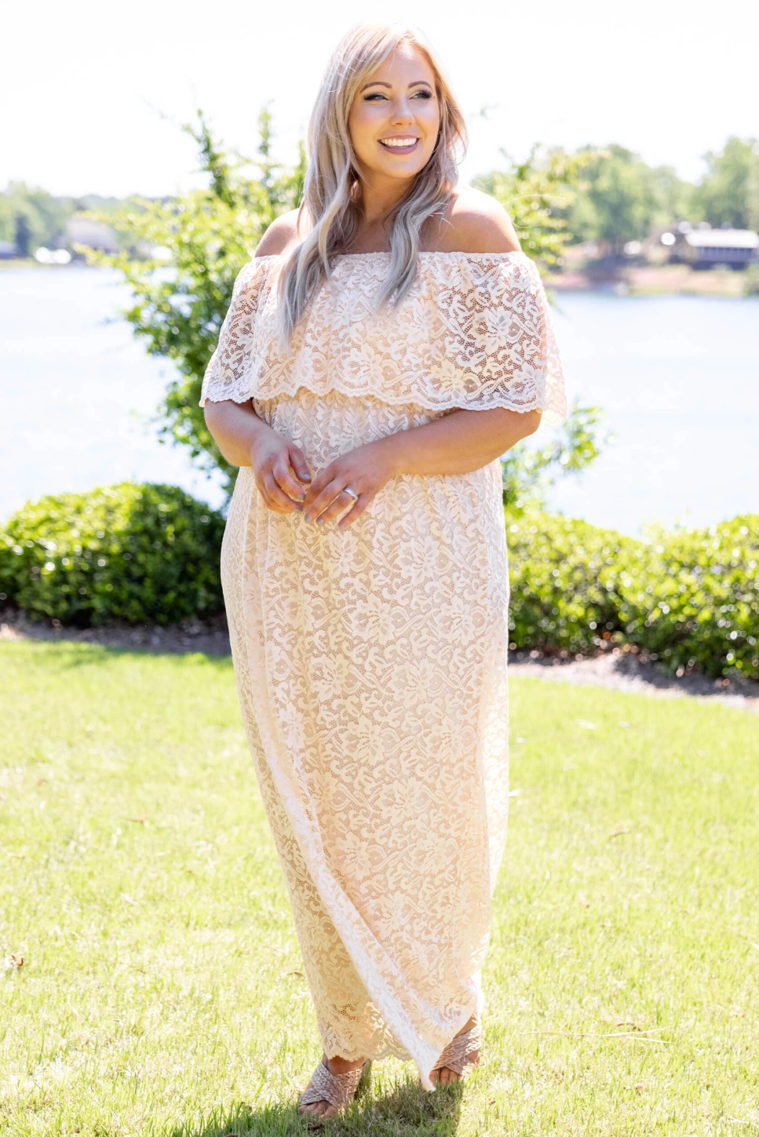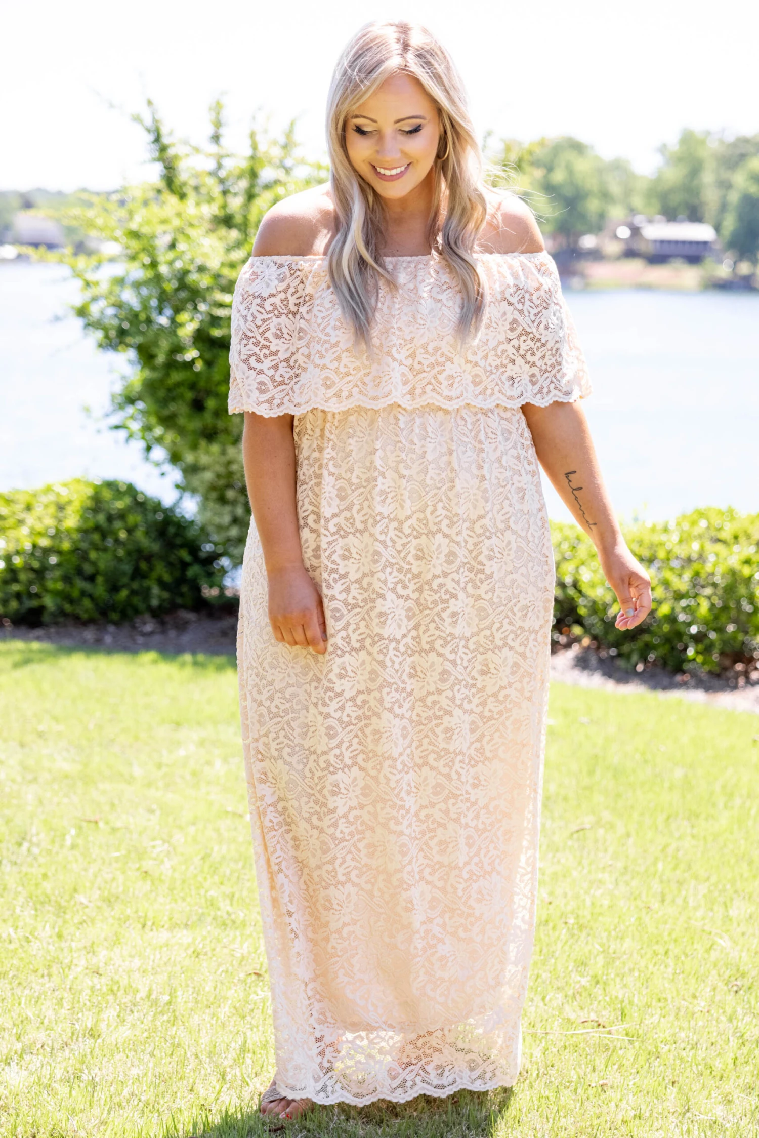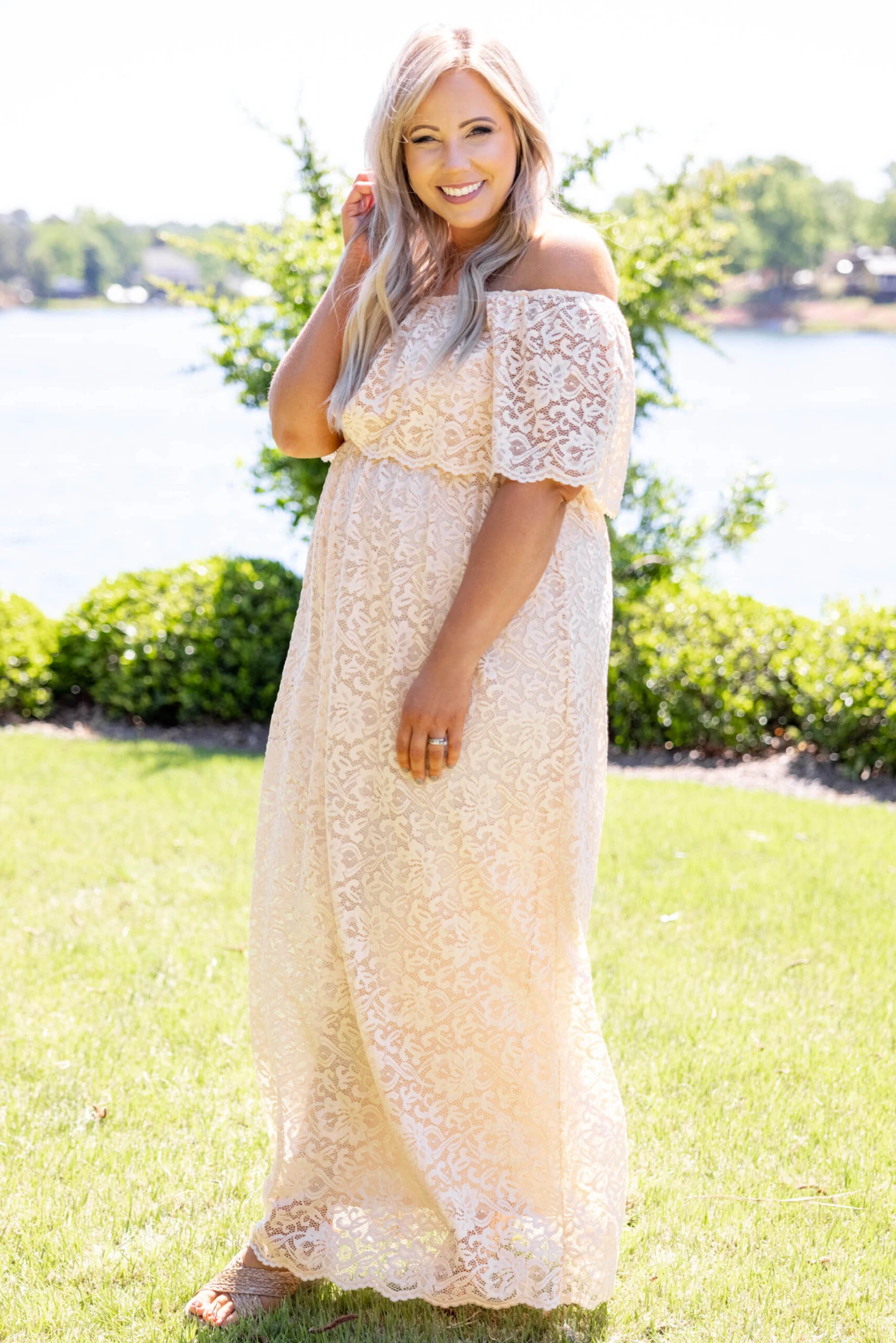 Look oh so elegant in this beautiful dress! This dress has a solid color you can style with your favorite shoes and accessories! It’s comfortable for all-day wear, has a figure-flattering fit, and features the prettiest lace detailing with an off-the-shoulder fit! Style this dress with heels or wedges for your next event!
