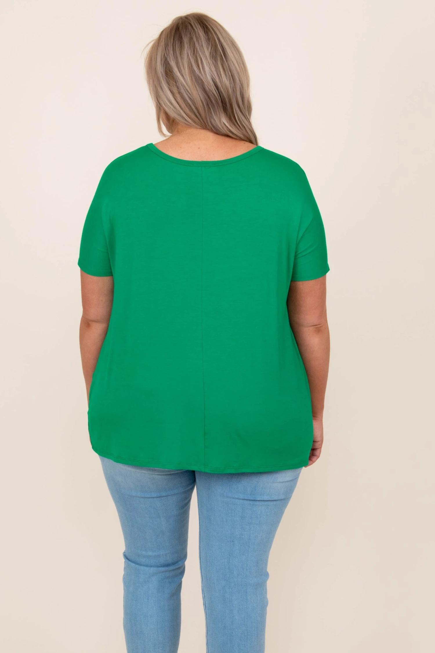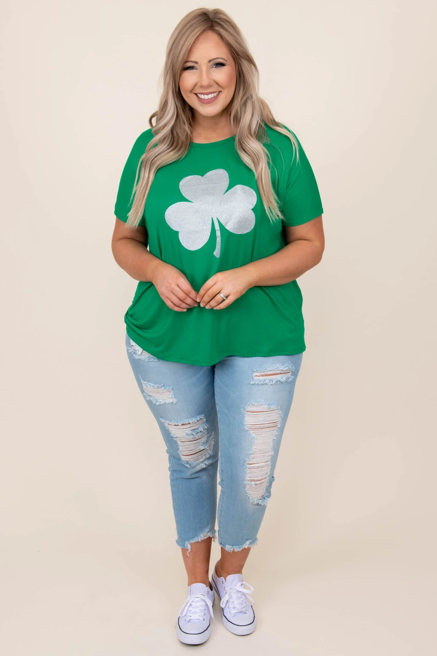 We’ve all seen greener days but this top is sure to make your days great! This tee has a simple graphic print with a bold green color that’s perfect for the season! It’s comfortable for all-day wear, has a figure-flattering fit, and can be styled with your favorite shoes and accessories! Pair this tee with shorts and sneakers for an easy everyday look!