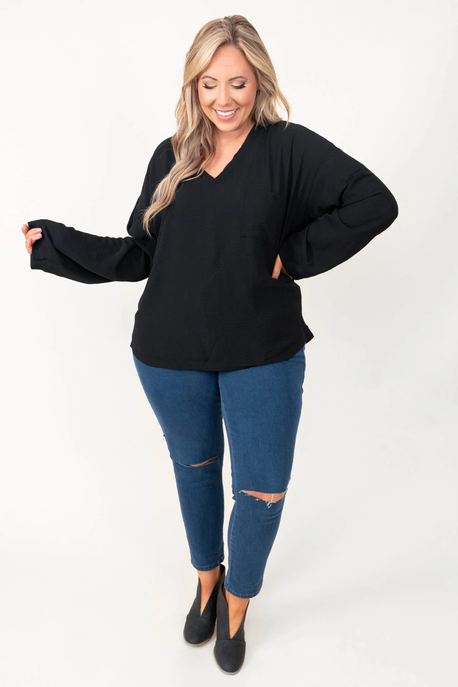 We cannot wait to see you in this top! It has a solid color you can dress up or down and style for every occasion! This top is so cute and is comfortable for all-day wear, plus it features a chic front pocket! Pair this top with skinnies and booties for an easy everyday look!