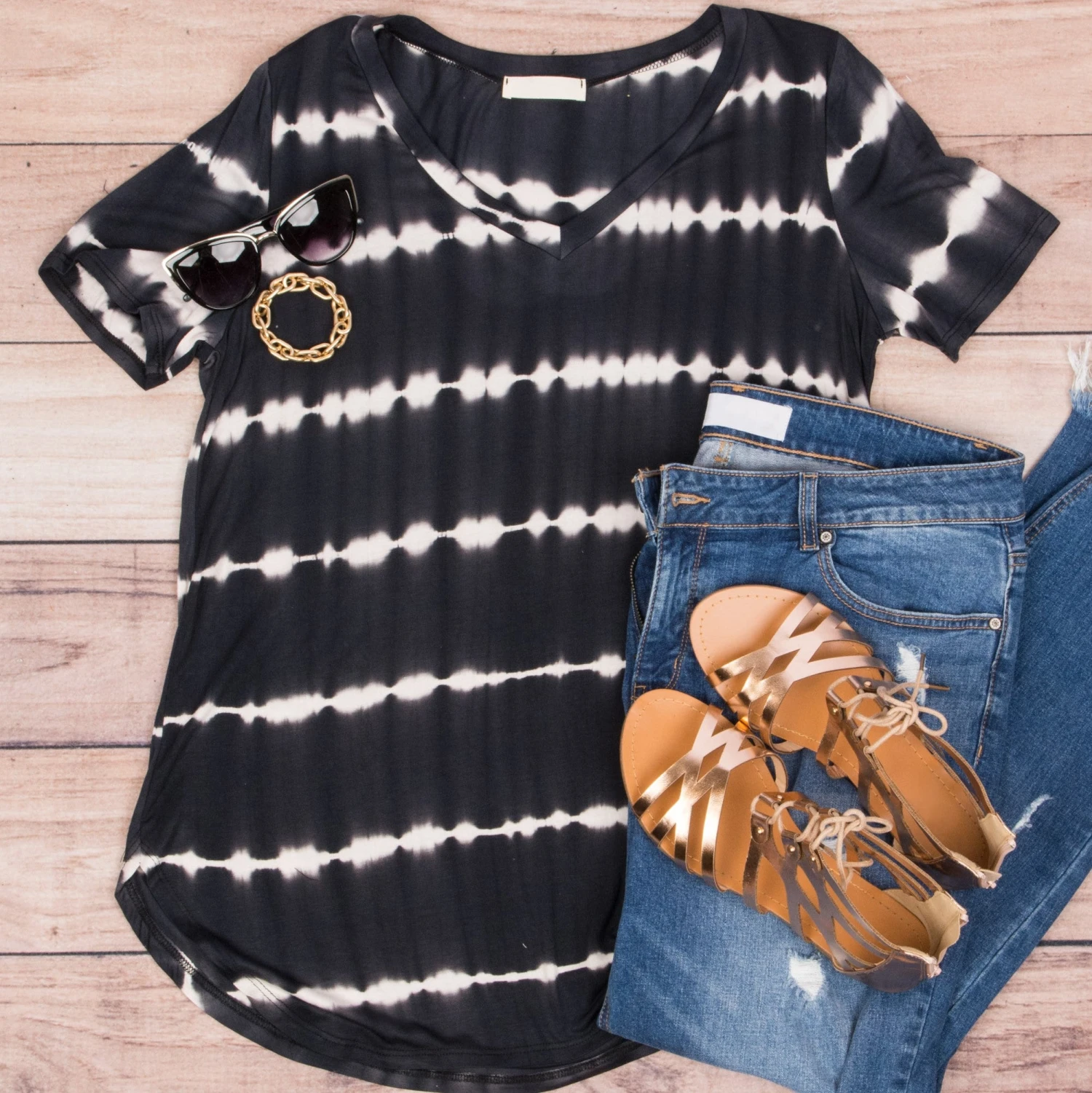 We promise you will fall in love with this tie-dye top! It has the comfiest fabric and casual, relaxed fit. You’ll love tossing it on with shorts or skinnies on hot Spring days!