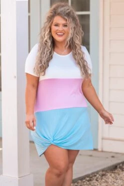This beauty is the perfect blend of comfort and style! Its colorblock design and knotted hemline create a fashionable silhouette while its lightweight, comfy fabric ensures maximum comfort! Put your best foot forward in this stylish and comfortable dress all season long!
