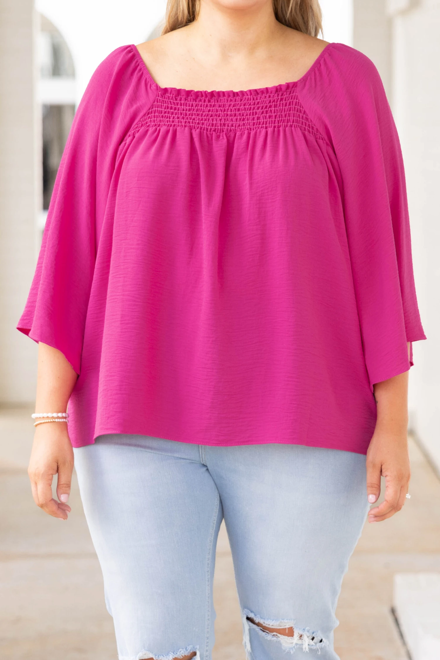 Embrace your beauty in this adorable top! The textured material and smocked top are just what you need for everyday wear! Style this top with some distressed jeans and wedges for a classic, chic look!