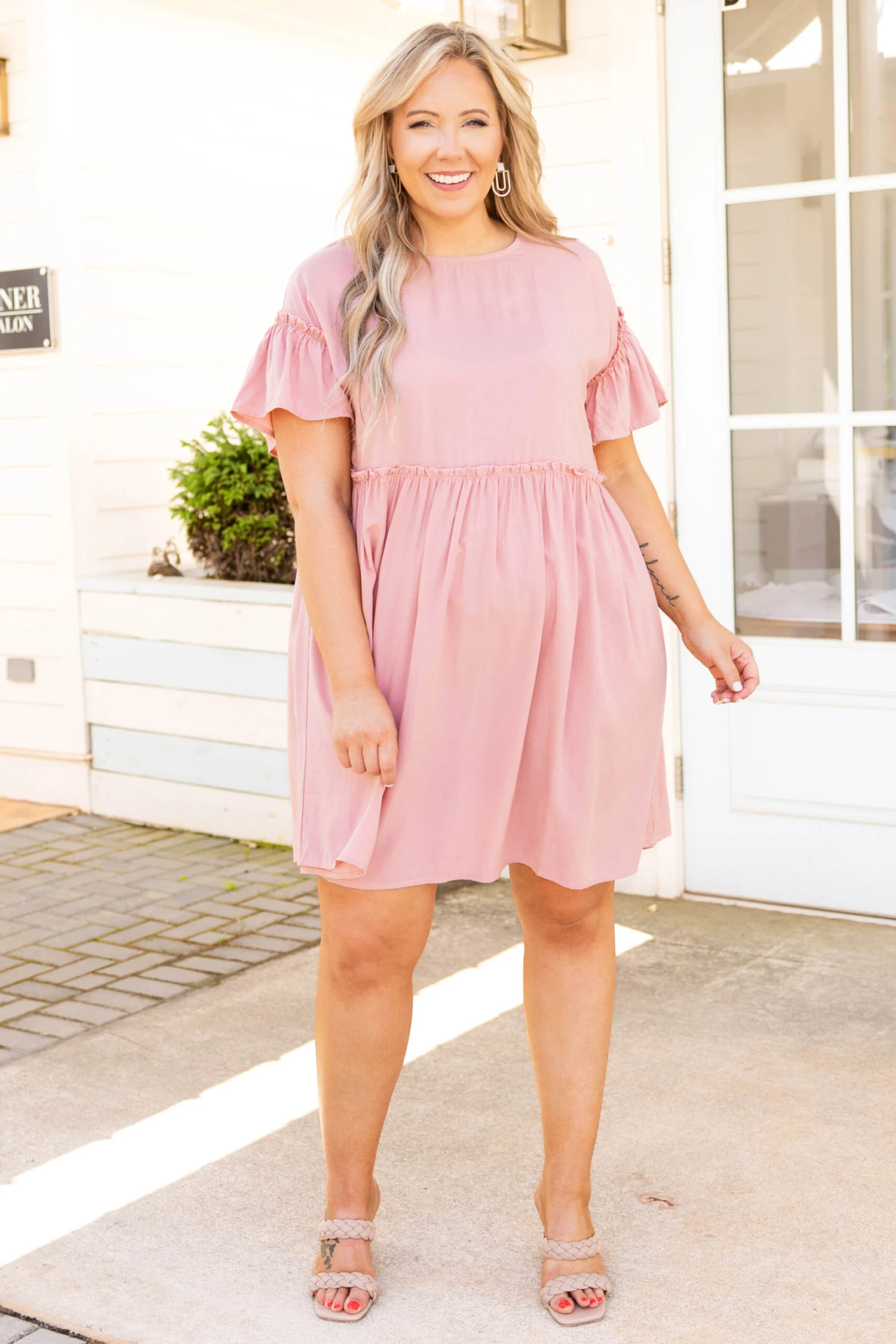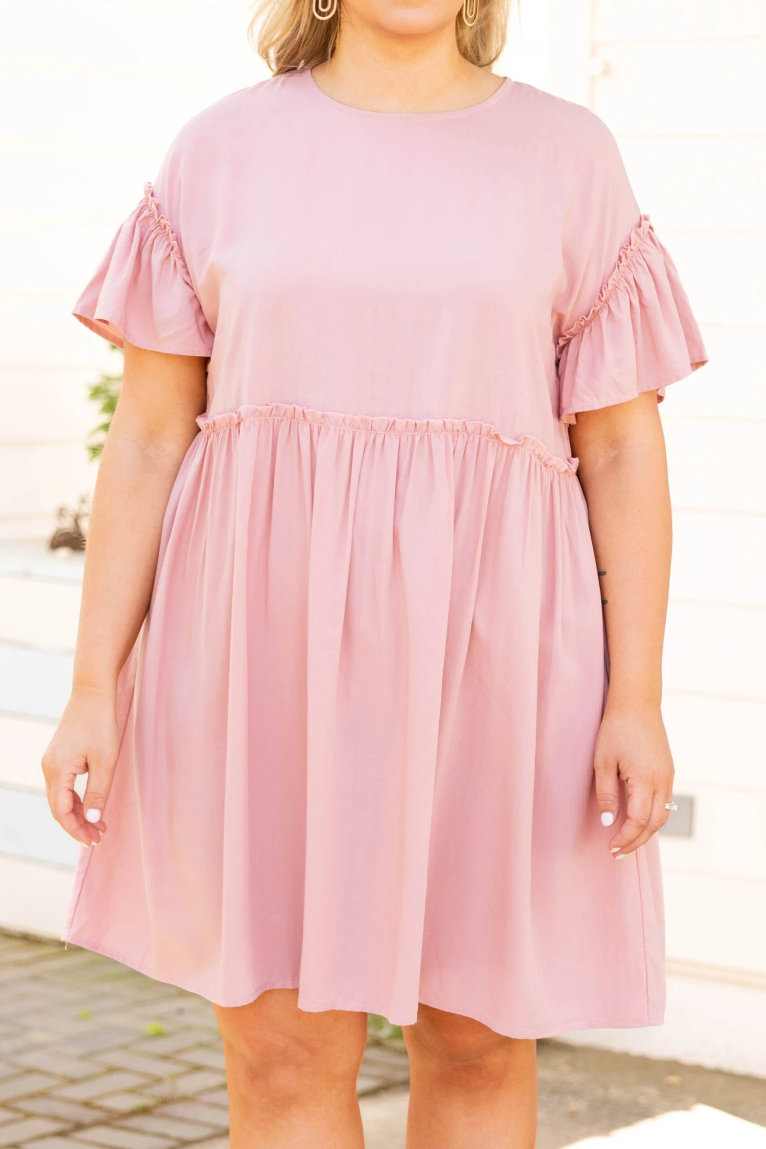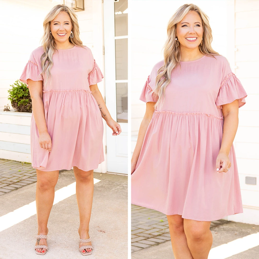 This dress is perfect for throwing on in your day-to-day life! The blush color is so sweet and the flowy babydoll style is so comfy for all day wear! The ruffle sleeves are so cute and the material is so comfy! Style this with some heels and fun accessories for the perfect look!
