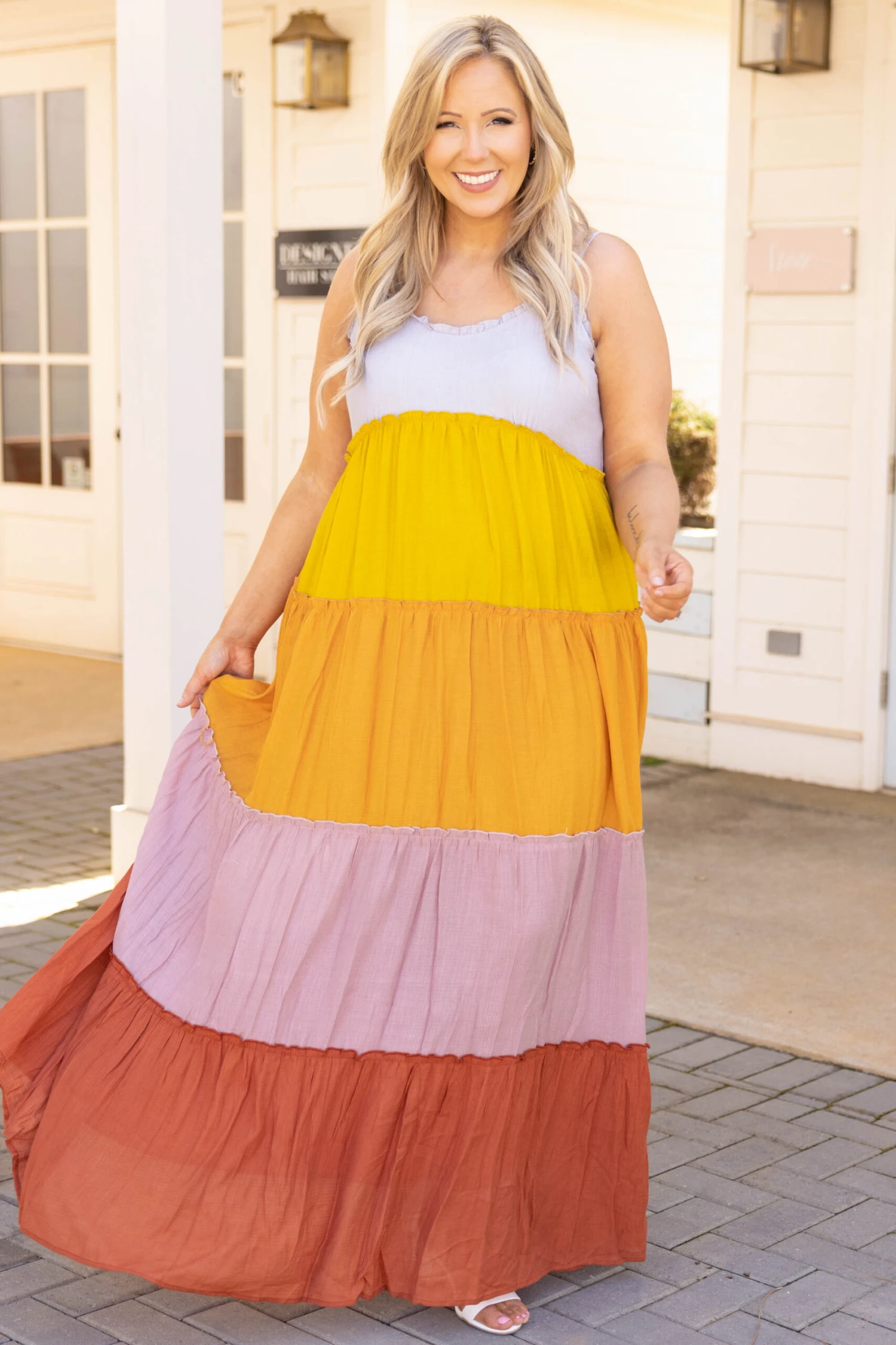 This dress is so cute we can’t get over it! The tiered colorblock style is so cute and the maxi length is so trendy right now! This babe can take you from a beach day look to a date night outfit so easily! We love it with some heels and a super fun accessory for a super stylish look!