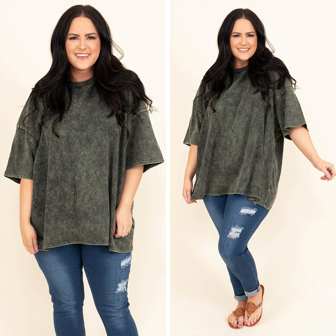 This oversized tee is just what you need this season! The neon army green mineral wash style is so cute and the oversized fit is sure to look good on everyone! Style it with some jeggings or skinnies for a casual chic look!