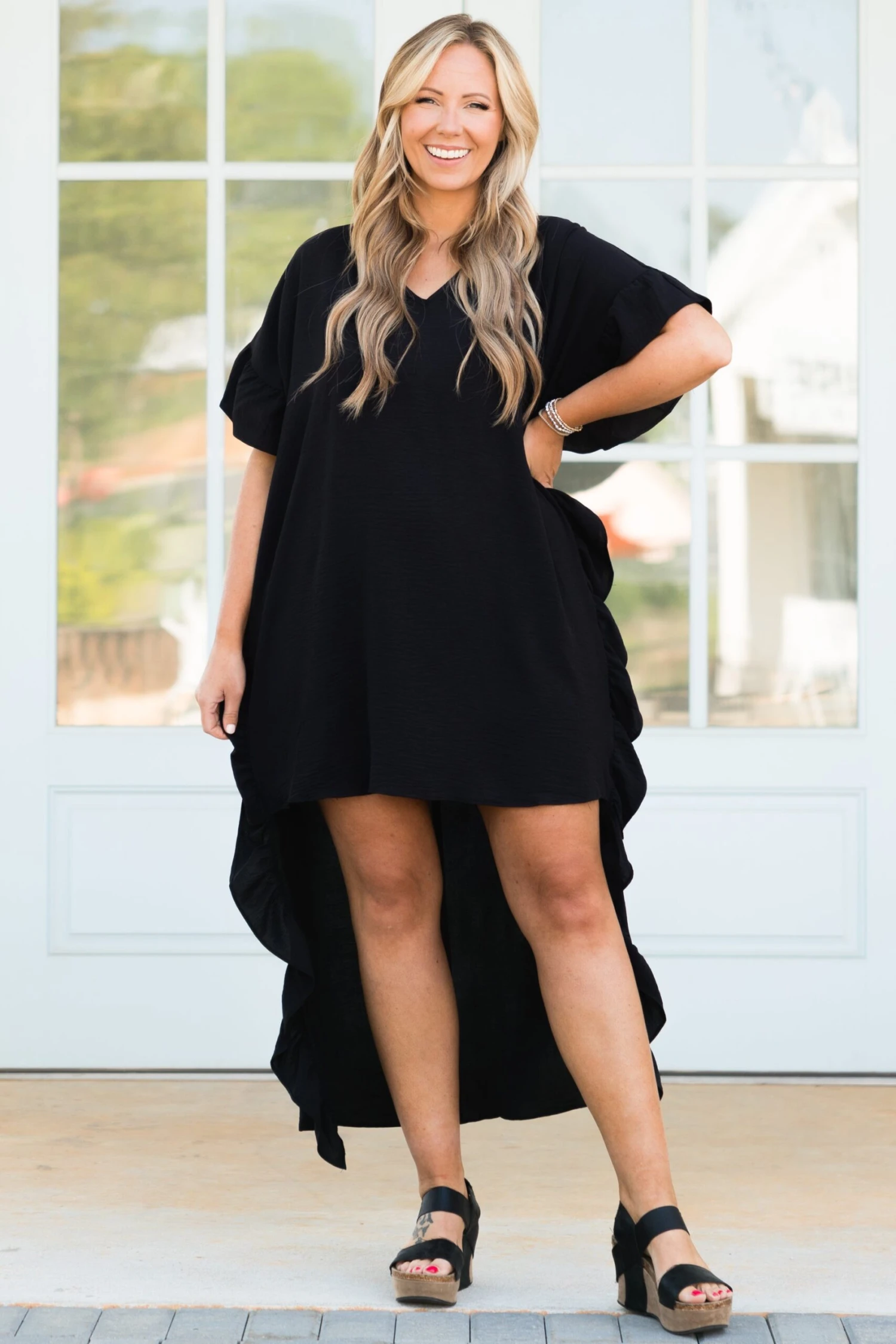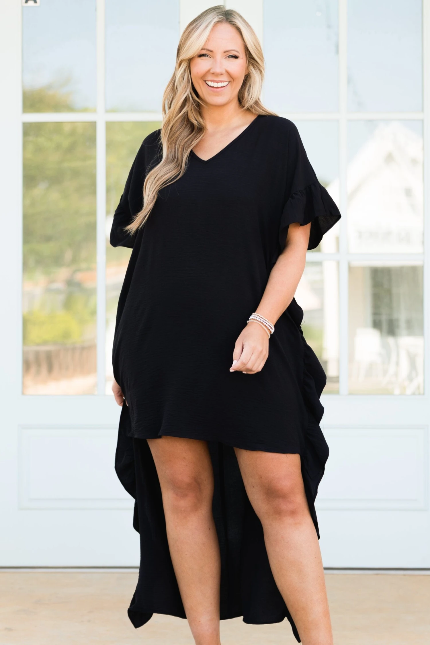 You + this dress = perfection! This dress has a classic black color that is a season favorite! The ruffled design and hi-low style is pure genius! It’s so comfy and figure flattering that you won’t want to take it off! Style this dress with cute accessories and heels for the ultimate chic look!