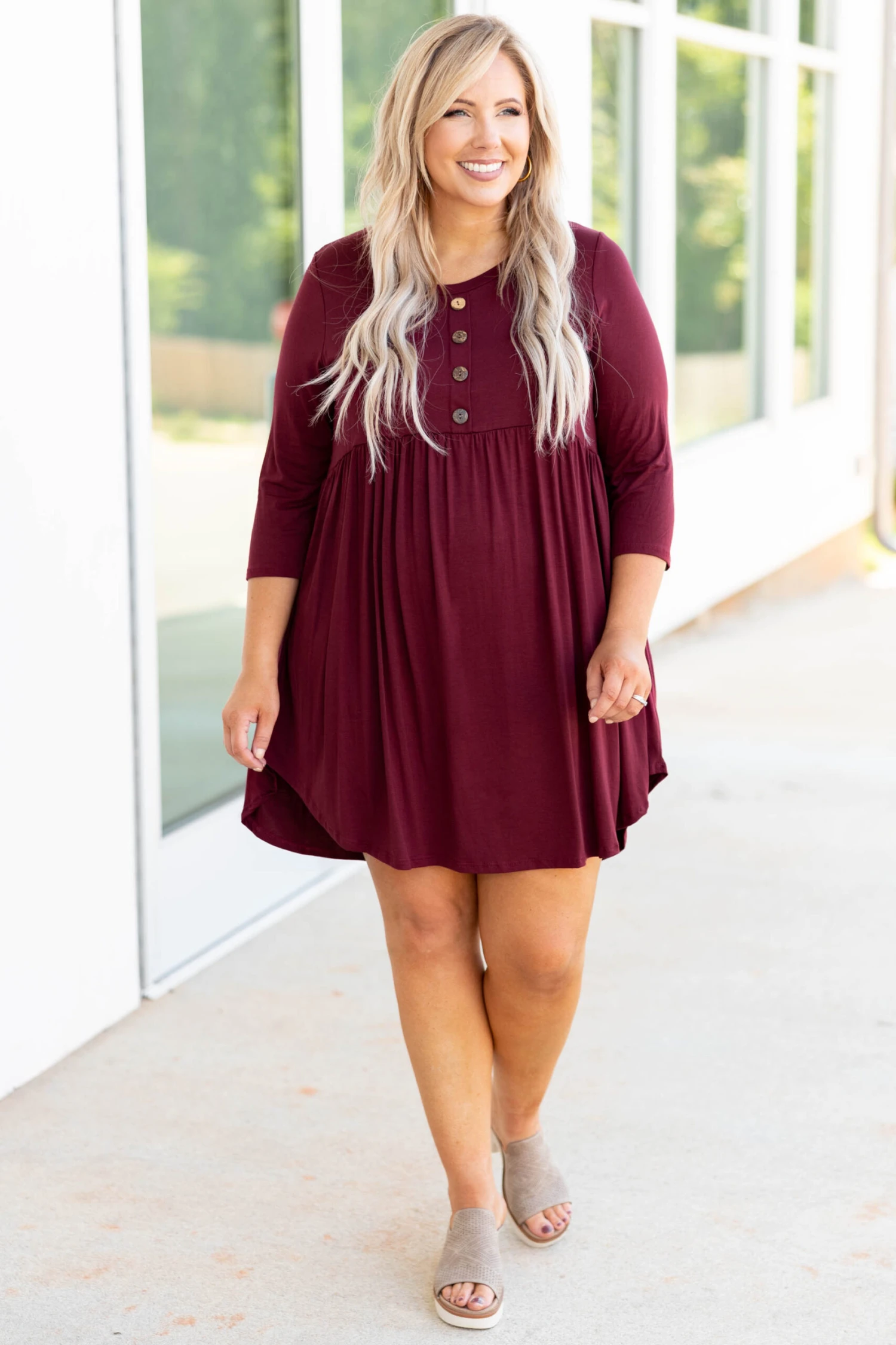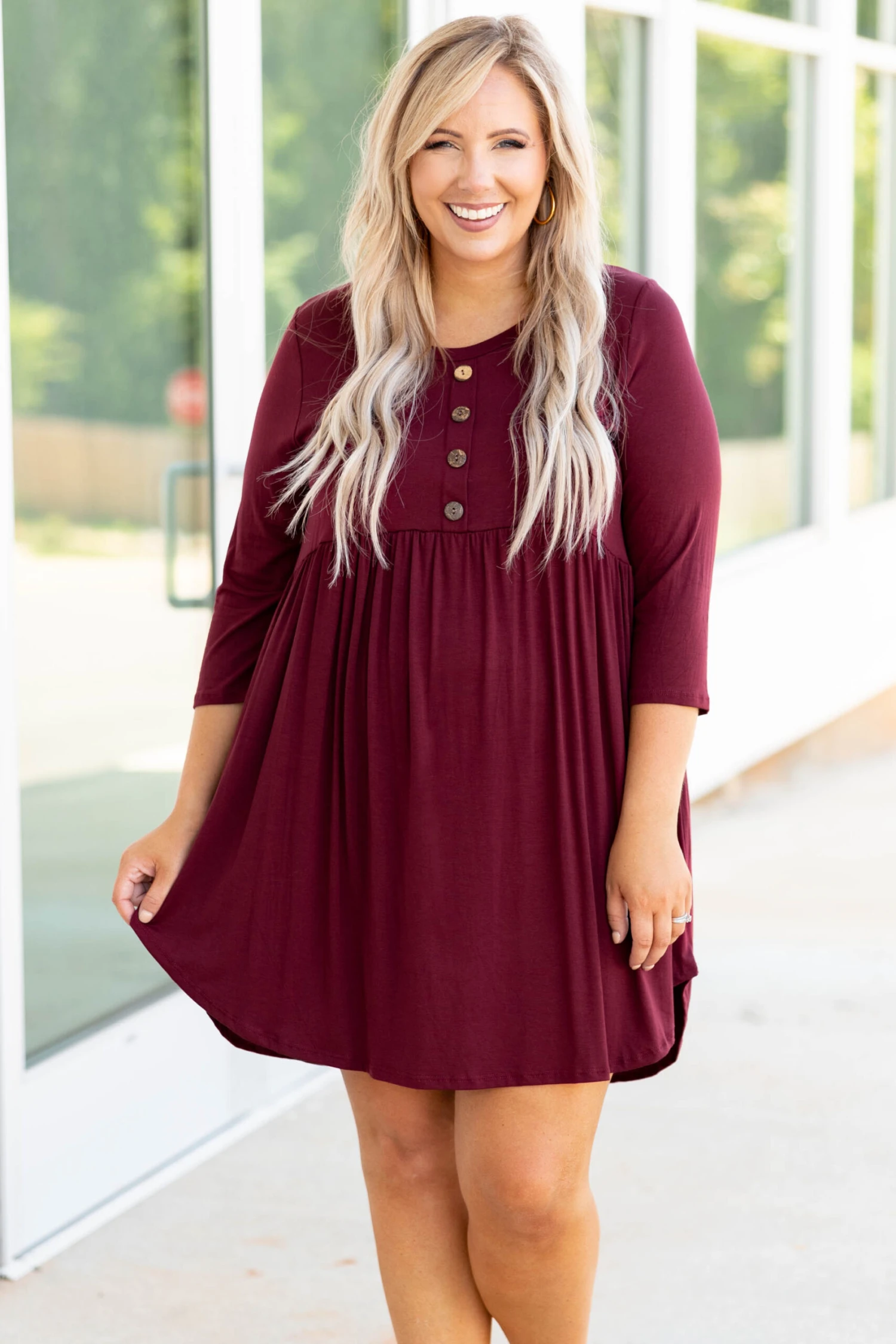 Make them stick to your terms in this dress! It has soft fabric and a flowy fit that’s perfect for every body type! Its neutral burgundy color can be paired with any of your favorite shoes and accessories, and how cute is the button detailing?! Wear it out with heels or booties or transition to Spring with wedges or sandals!