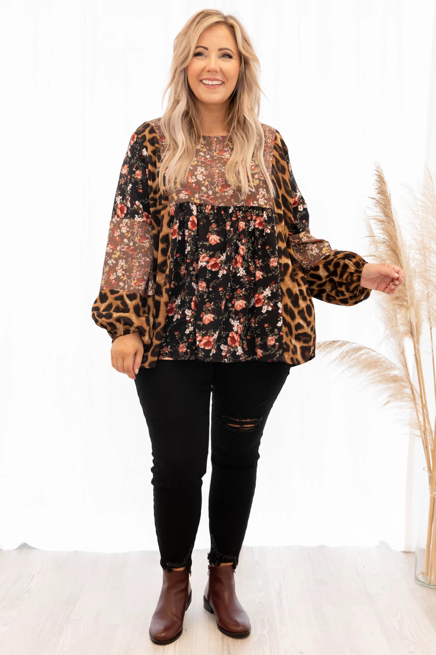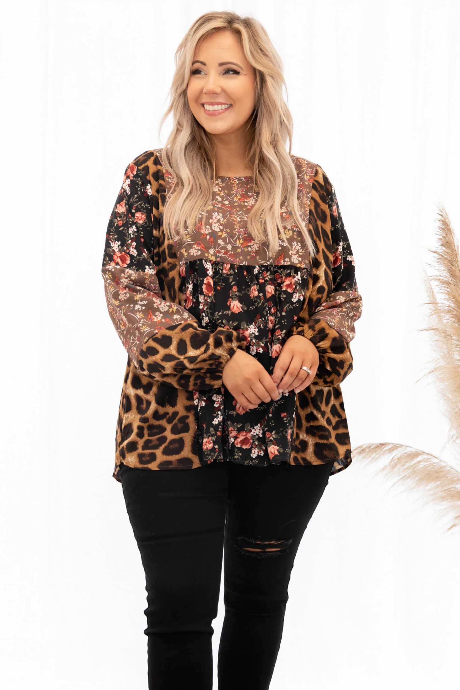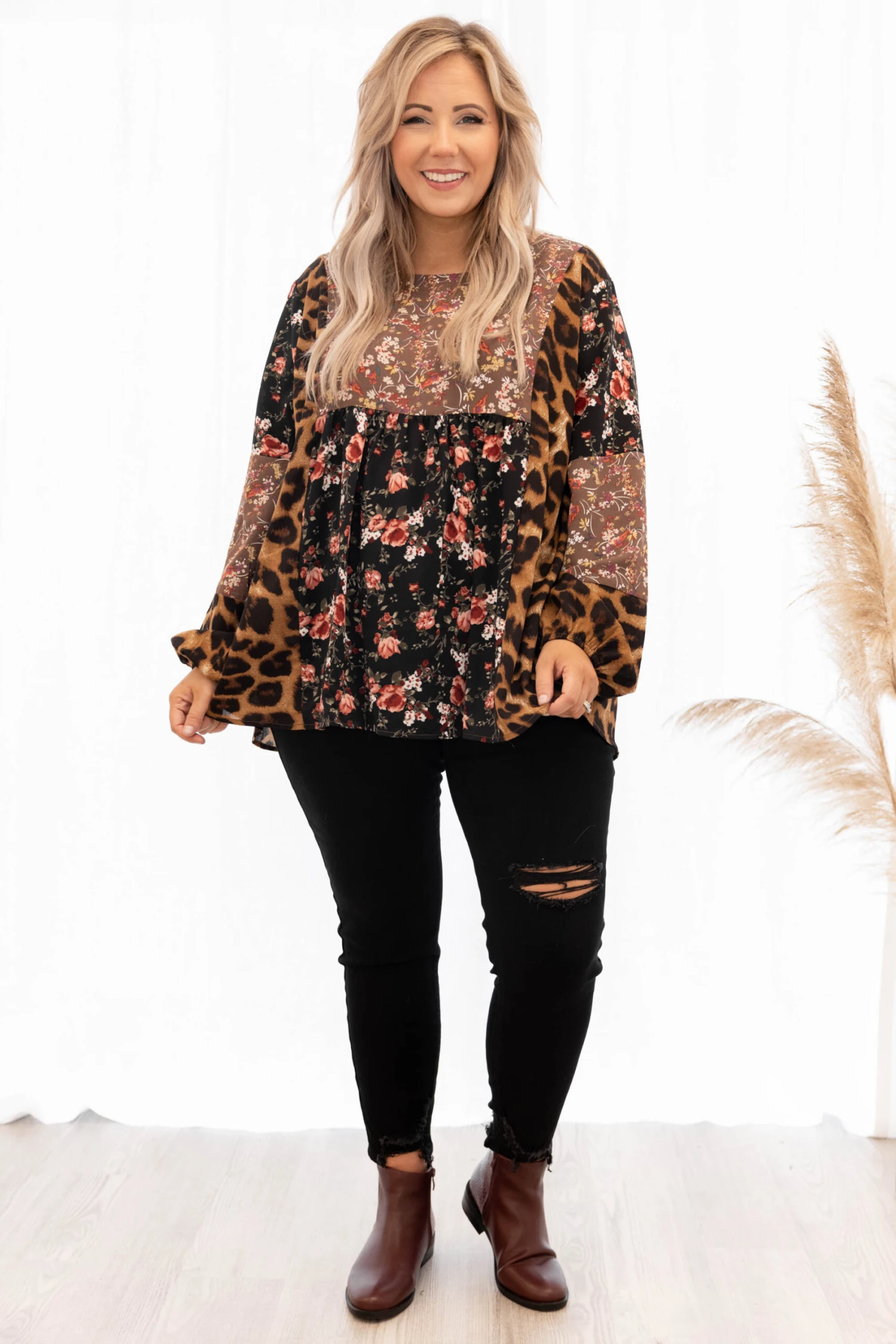 Go ahead and let your hair down and look beautiful in this top! This top has a trendy leopard & floral print pattern with neutral colors you can style for every occasion! It’s comfortable for all-day wear, has a flowy fit to flatter your figure, and can be worn with your favorite shoes and accessories! Pair this top with skinnies and booties for an effortlessly chic look!