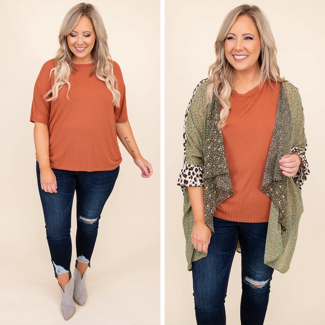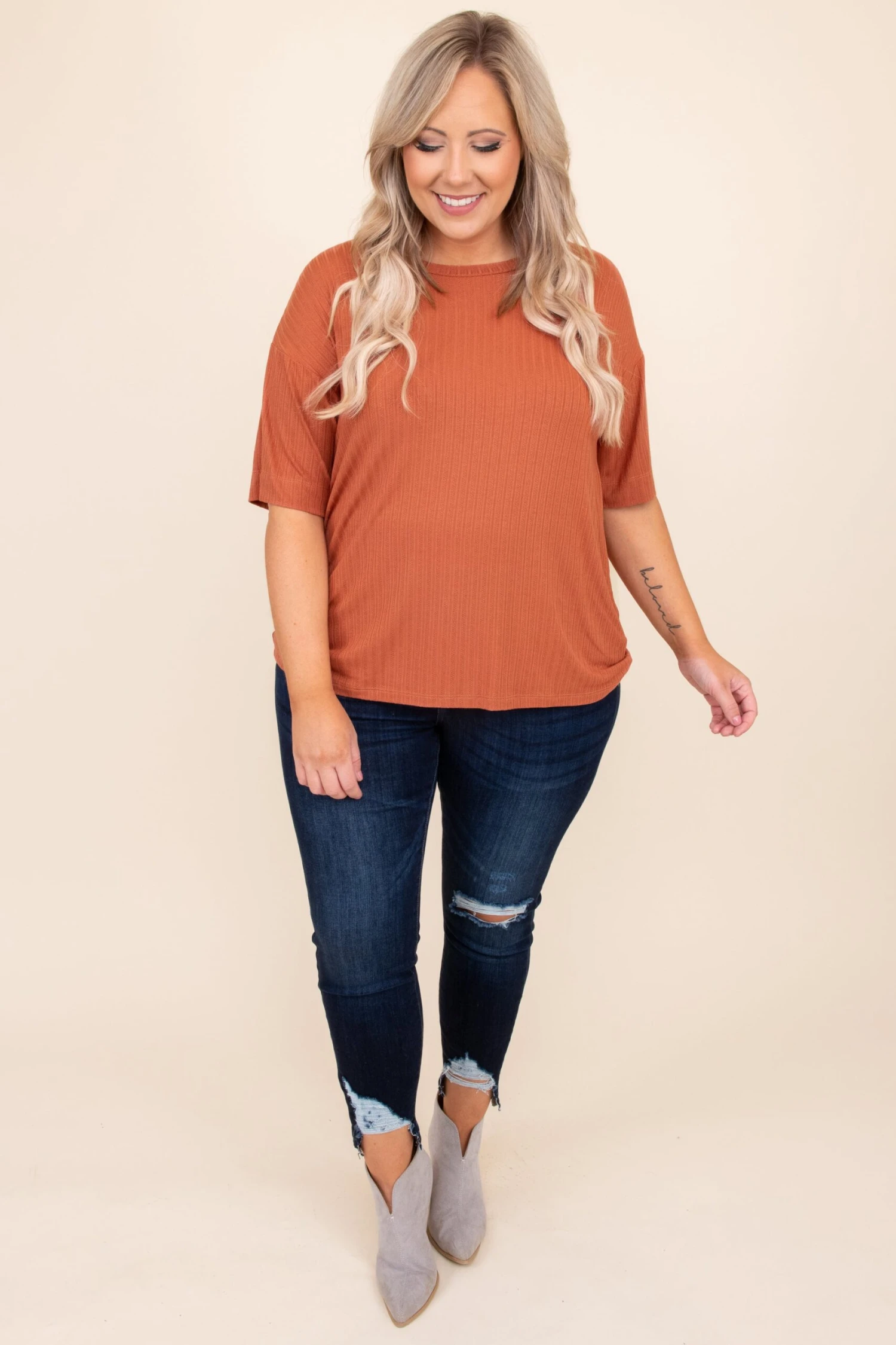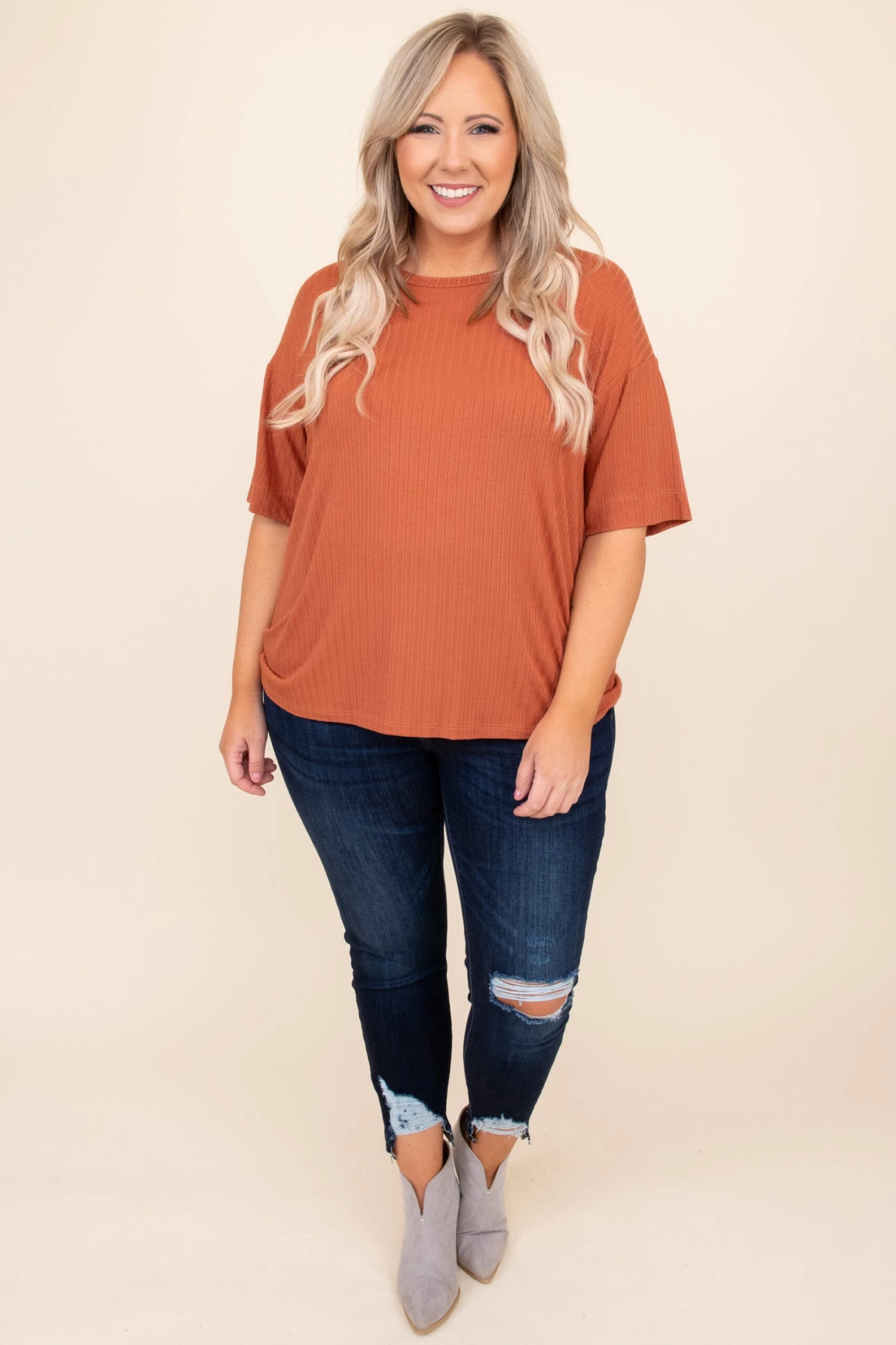 Savor every inch of this top! It’s a solid rust-colored top that is a closet staple! It has a relaxed fit and super soft fabric that will keep you comfy from day to night! Throw it on with leggings and sneakers for your next adventure!