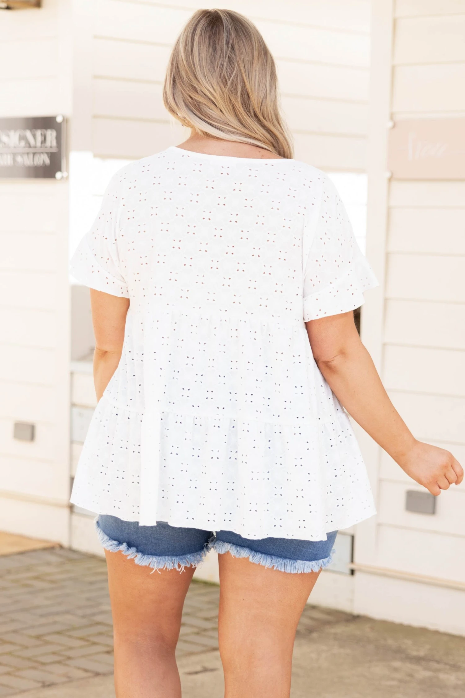 There’s nothing shady about this top! The babydoll style is so cute and the eyelet lace is beautiful! This cutie is so comfy you can easily wear it all day long! Style this with some white denim and heels or sandals for a perfect look!