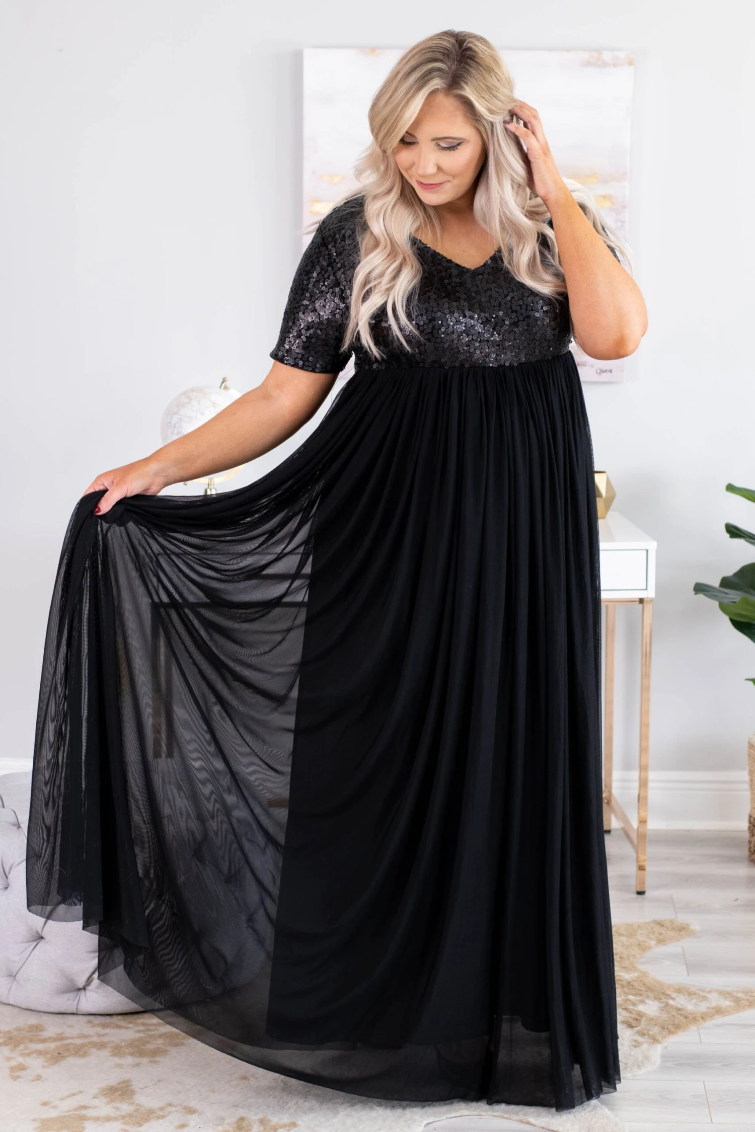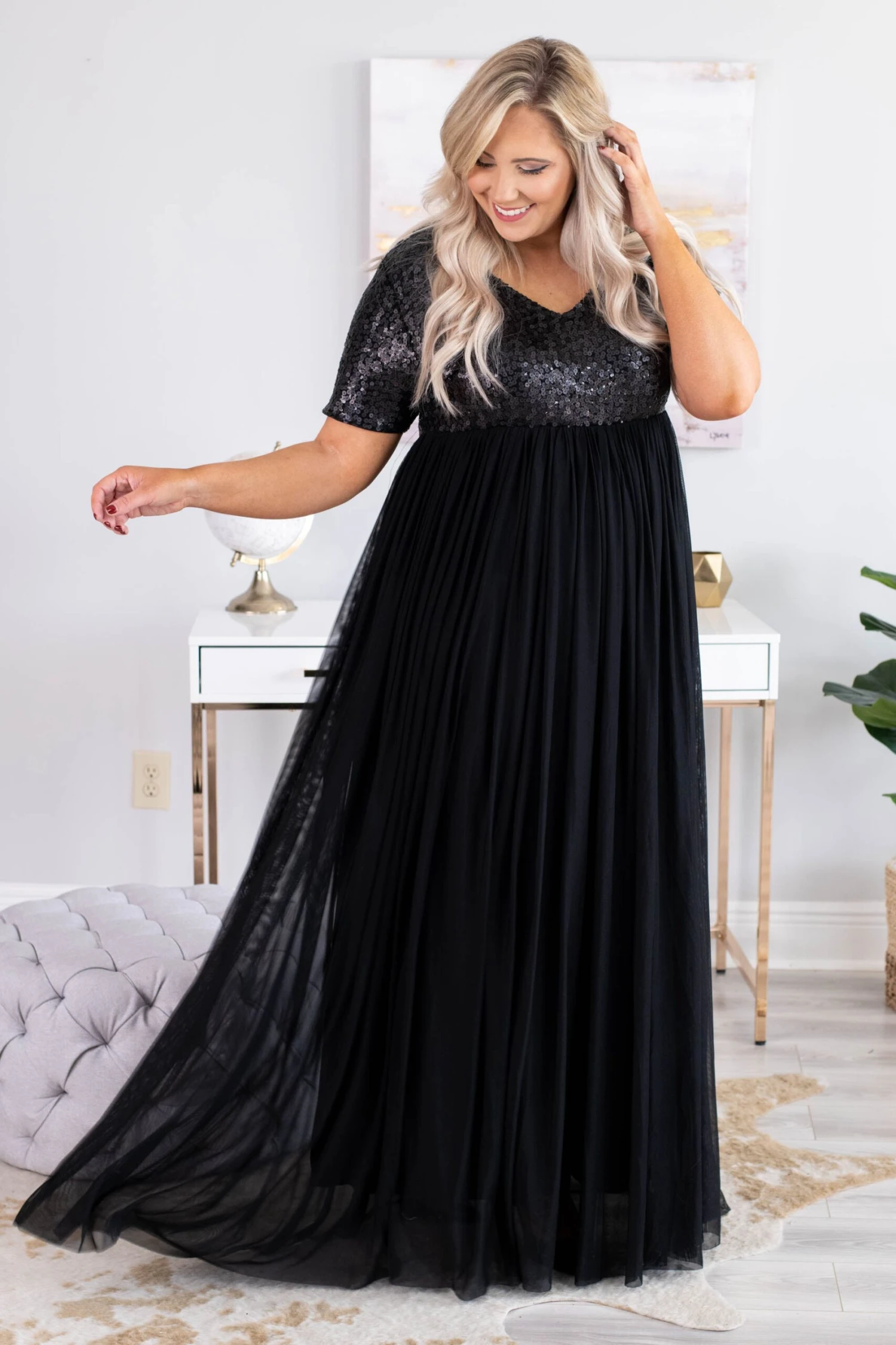 You are going to shine bright like a diamond in this dress! This dress is sure to stun for all of your new year events! We love the contrast between the sequined top and tulle skirt! This dress is comfortable to wear all night long, has a figure-flattering fit and all the sparkles you will ever need in a dress! Pair this dress with trendy heels and your favorite statement jewelry to complete the look!