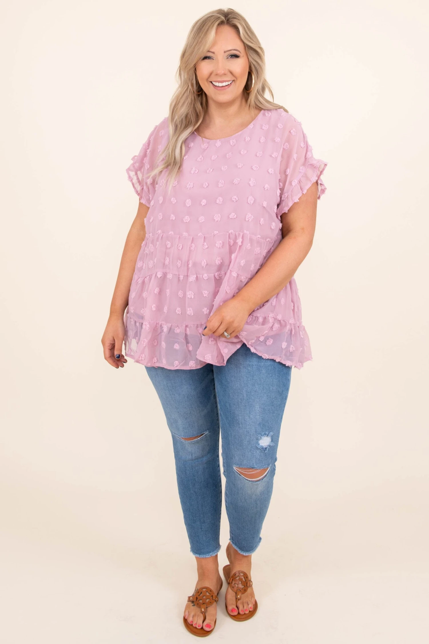 This top is everything and more! The babydoll style combined with the blush color is so sweet! We love this cutie styled with some skinnies and sandals for the perfect look!