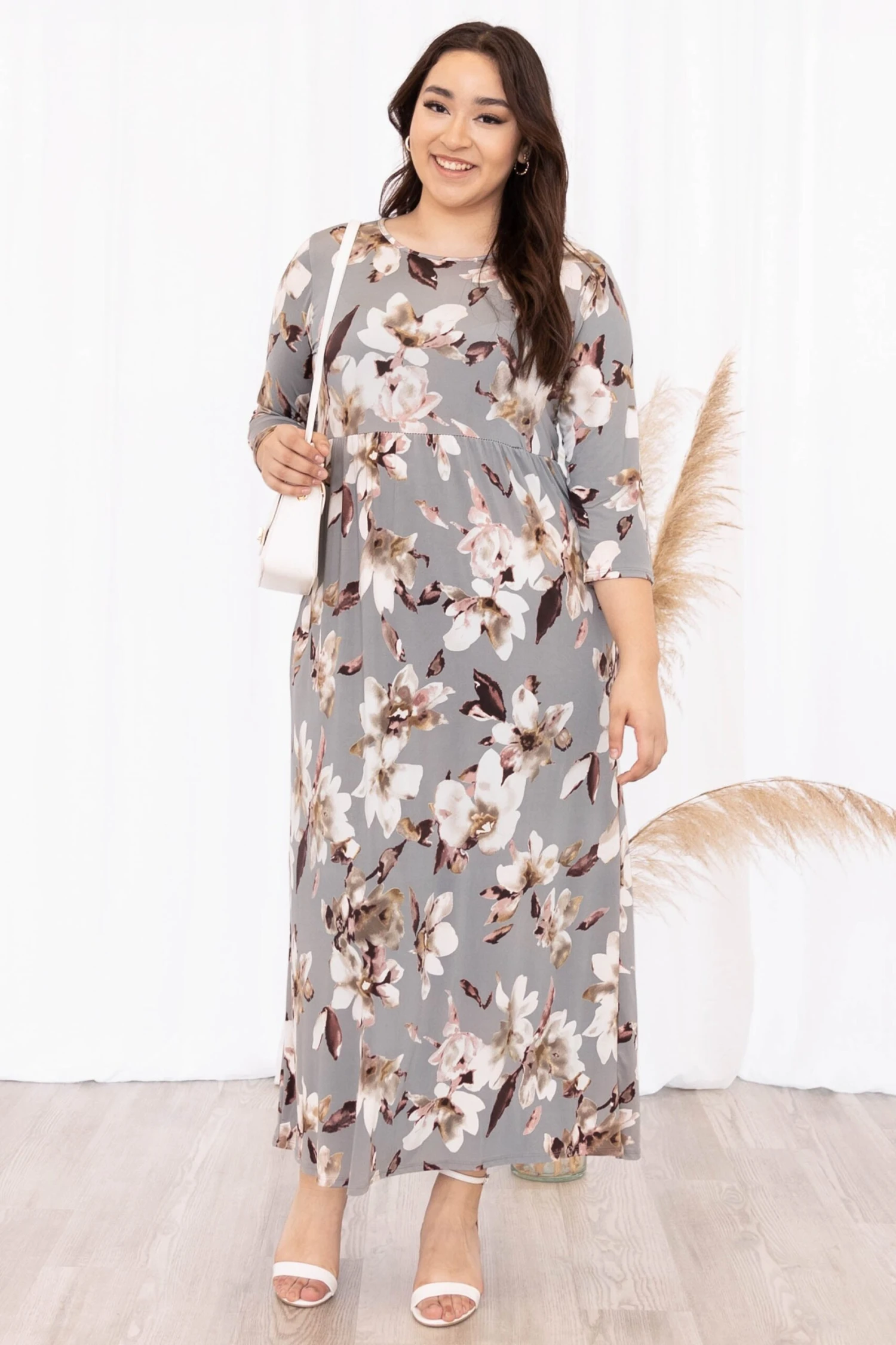 This maxi dress is amazing! This cutie has a stunning floral pattern and a trendy maxi length for max style! The gray color is so fun to pair with white accessories! Style it with some white heels and accessories for a super fab look!