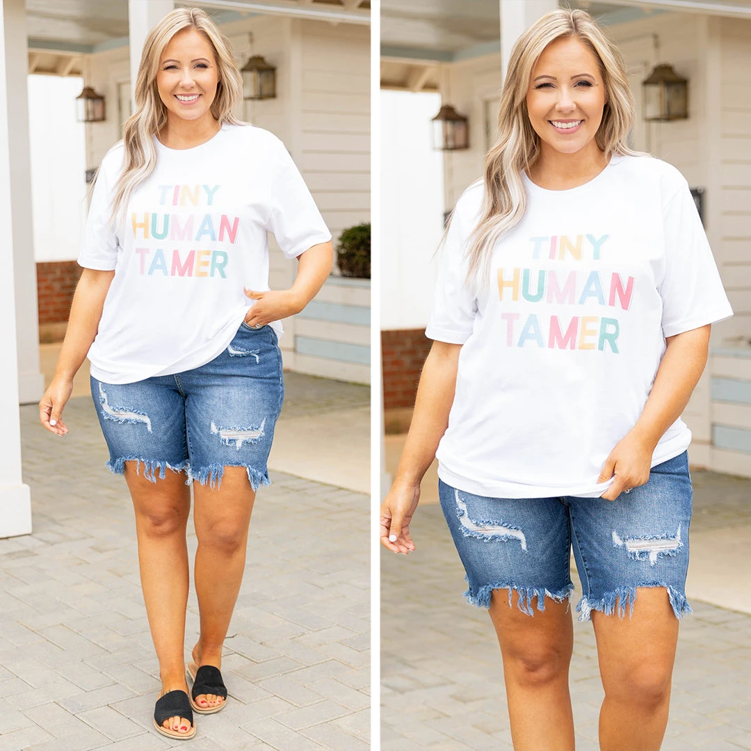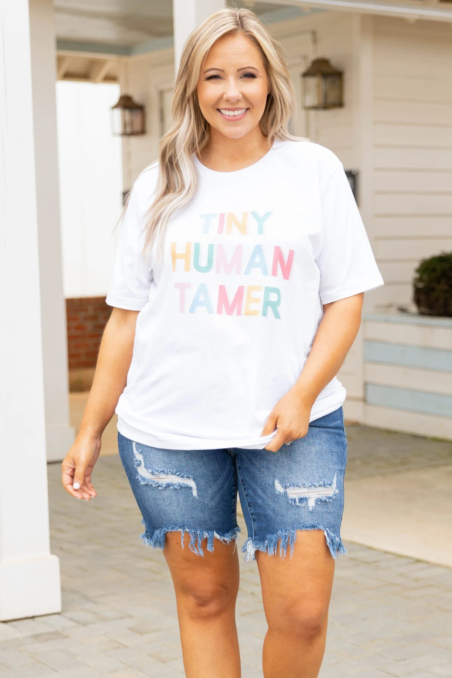 Tiny human tamers, you have the best job in the world! Use this adorable tee to show it loud and proud! We love the white color that can match anything and the fun graphic is so cute! Style this with jean shorts and sandals for a super cute look!
