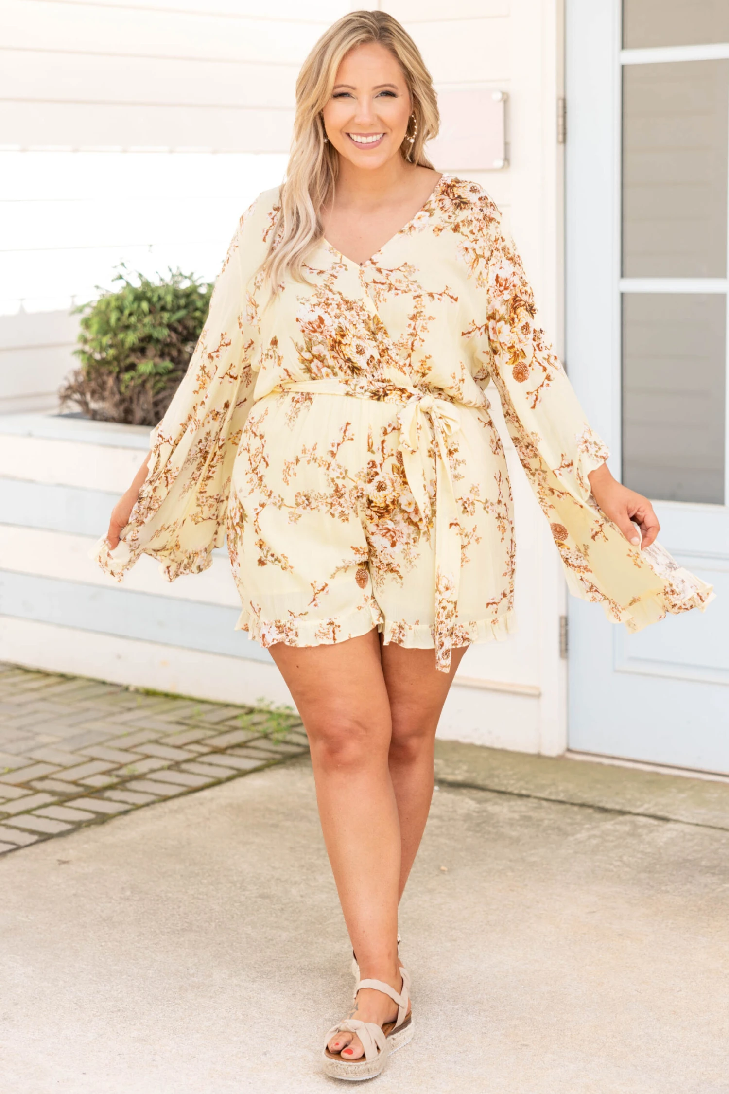This romper was made for creating memories! This romper has a pretty floral pattern with yellow colors you can style for every occasion! It’s comfortable for all-day wear, has a figure-flattering fit, and features the cutest v neckline! Pair this romper with sandals for an effortlessly chic look!