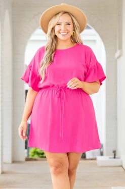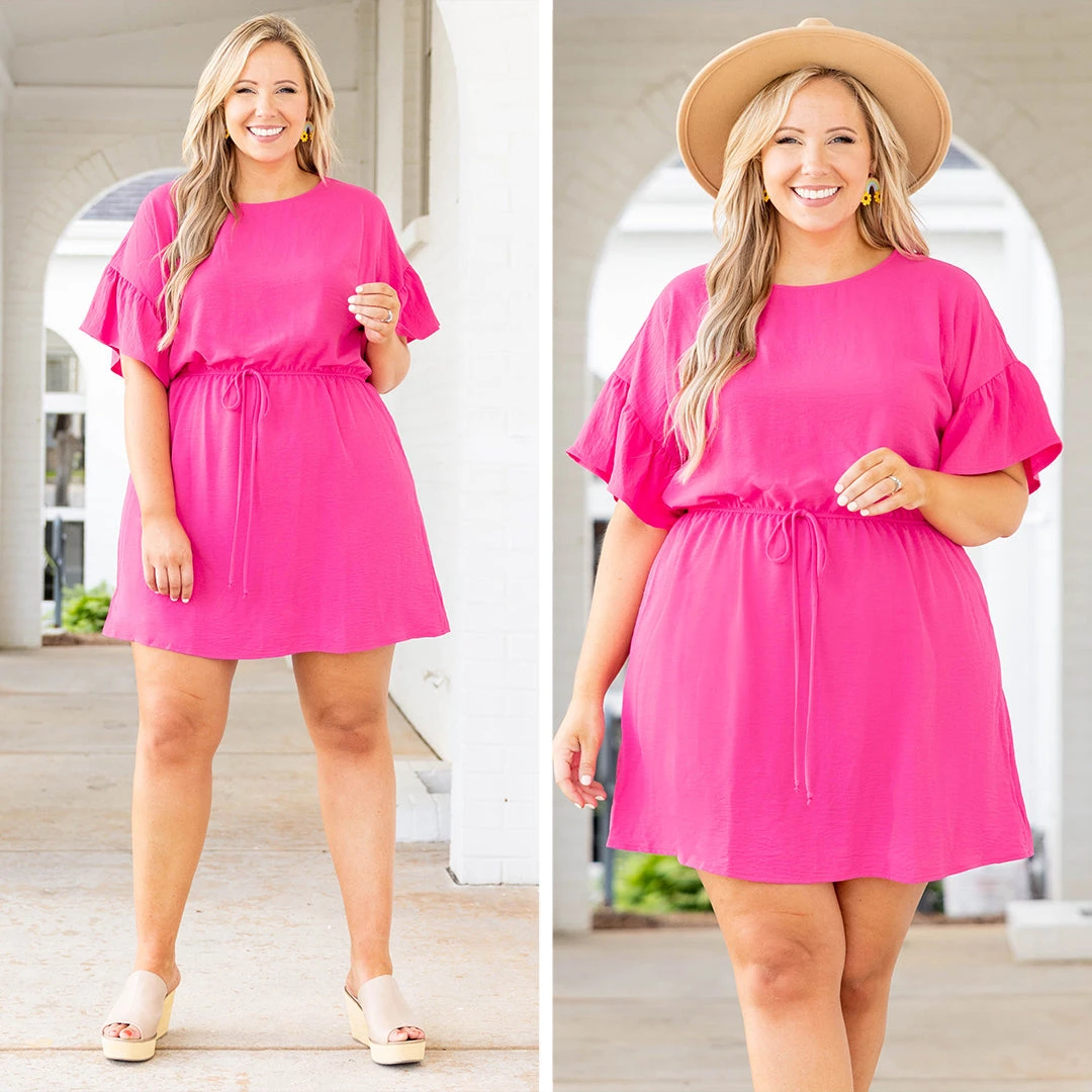 Let your beauty shine bright like the sun in this beautiful dress! The fabulous pink color and ruffles around the sleeves are bold and just in time for the season! Simply style this dress with some wedges and cute accessories for a classic, trendy look!