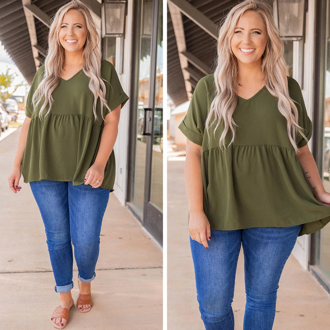 Expect many wide-eyed gazes when you’re wearing this top! This top has a sleek design with a pretty color you can dress up or down and style for every occasion! It’s comfortable for all-day wear, has a figure-flattering baby doll fit, and features the cutest cuffed-sleeves for the ultimate trendy look! Simply, style this top with skinnies and booties for an easy everyday outfit!